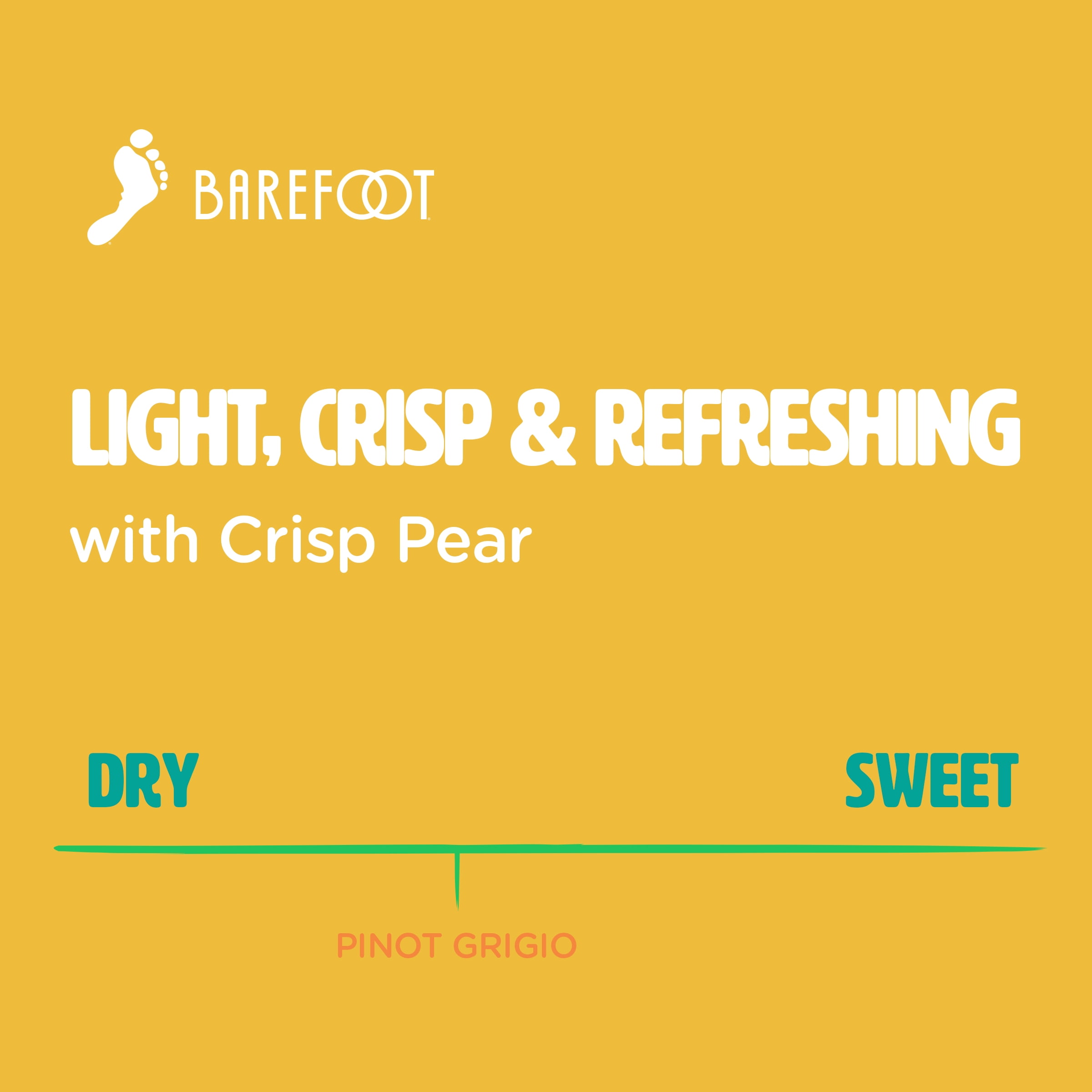 Barefoot Pinot Grigio White Wine features tart notes of green apples and the juiciness of fresh white peaches along with the floral aroma of jasmine. Crisp and refreshing, this light bodied Pinot Grigio wine pairs perfectly with traditional dishes like pasta, poultry and pizza. Ideal for sharing at outdoor parties on warm summer days, this Barefoot wine is best served chilled. This 750 mL bottle comes with a screw cap for easy opening and secure storage. This Pinot Grigio comes from Barefoot, the most awarded wine brand in US competitions. Let’s get barefoot.