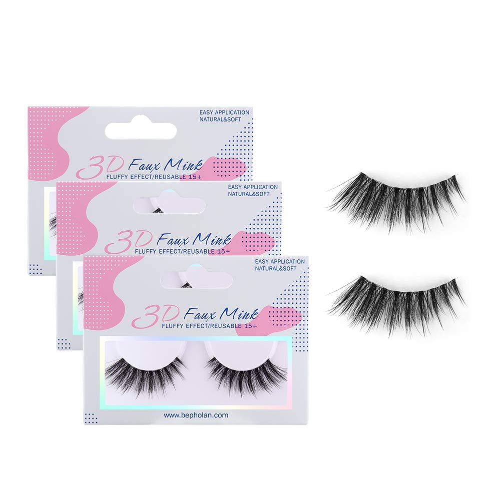BEPHOLAN 3 Pairs False Eyelashes Synthetic Fiber Material| 3D Mink Lashes
