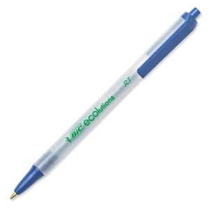 Ecolutions Retractable Ballpoint Pen is made with a high percentage of recycled plastic and packaged with paper a high percentage of recycled fibers. Tip, clip and plunger top color match ink color. Nonrefillable ballpoint pen has a break-resistant pocket clip and medium point.BIC Clic Stic Retractable Ball Pens