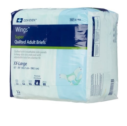 Cardinal Adult Incontinent Brief Wings Super Tab Closure 2X-Large Disposable Heavy Absorbency Pack of 12