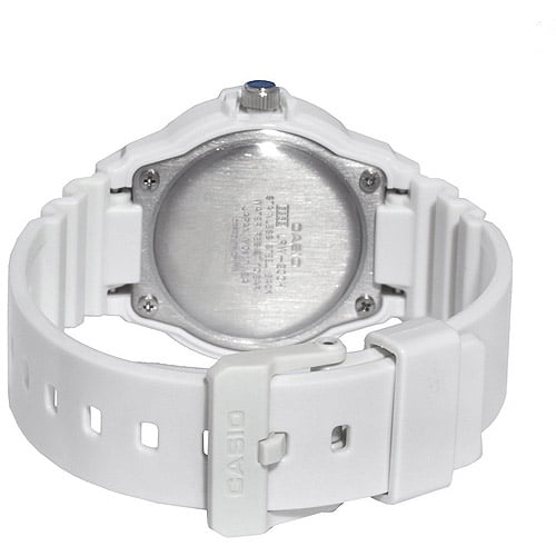 An adjustable resin strap provides all-day comfort on the Casio Women’s Dive Style Watch with a practical design featuring 100 meter water resistance keeping you prepared for every activity.