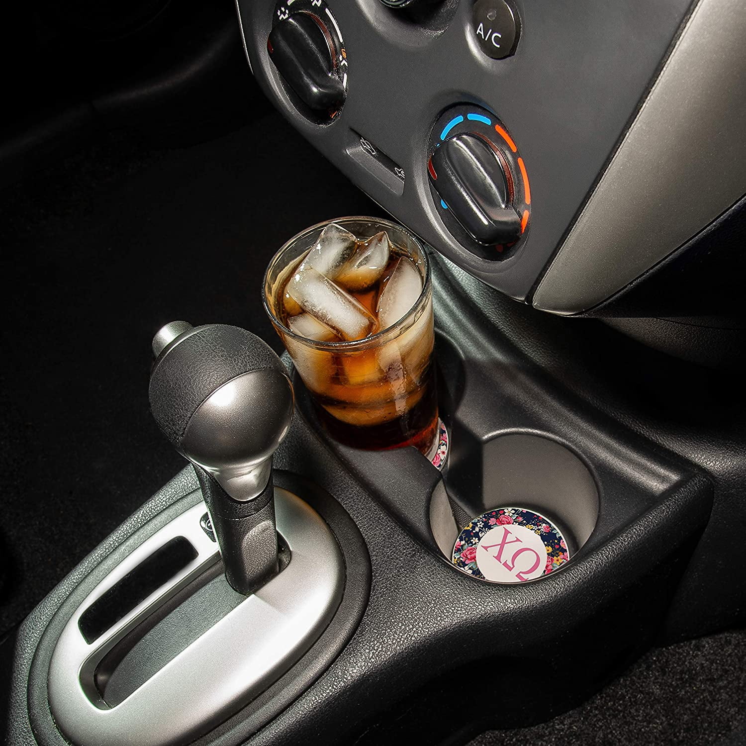 - [ GREEK YOUR CAR OUT ] our car cup coasters go inside your cup holders in your car. All you do is take them out of their packaging and place them design up in the bottom of your cup holder. When a drink isn?t inside your cup holder, you?ll see colorful design that is printed on it. These car coasters are also easily removable by pressing along the edge.