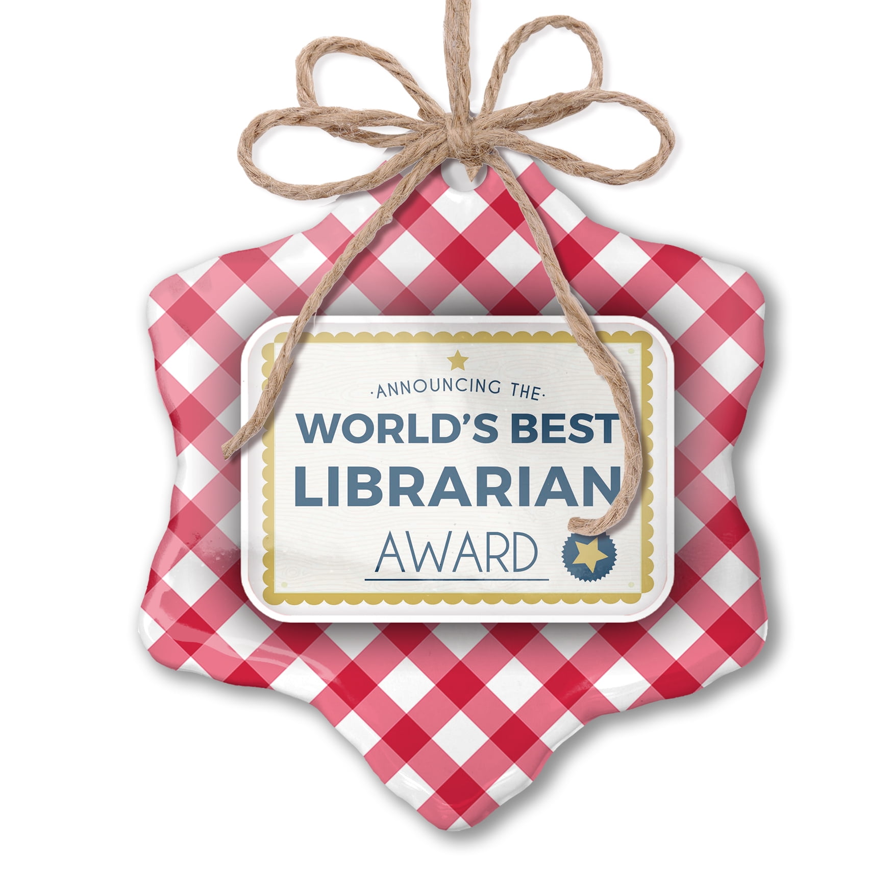 Christmas Ornament Worlds Best Librarian Certificate Award Red plaid Neonblond