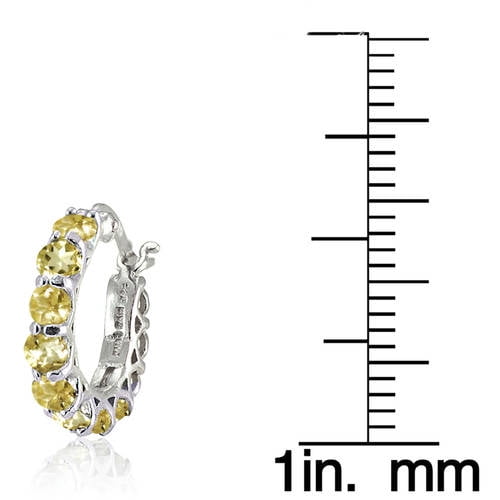 These graceful earrings features three-millimeter round-cut citrine stones in a sterling silver huggie earring. They are secured by posts and snap down backings.