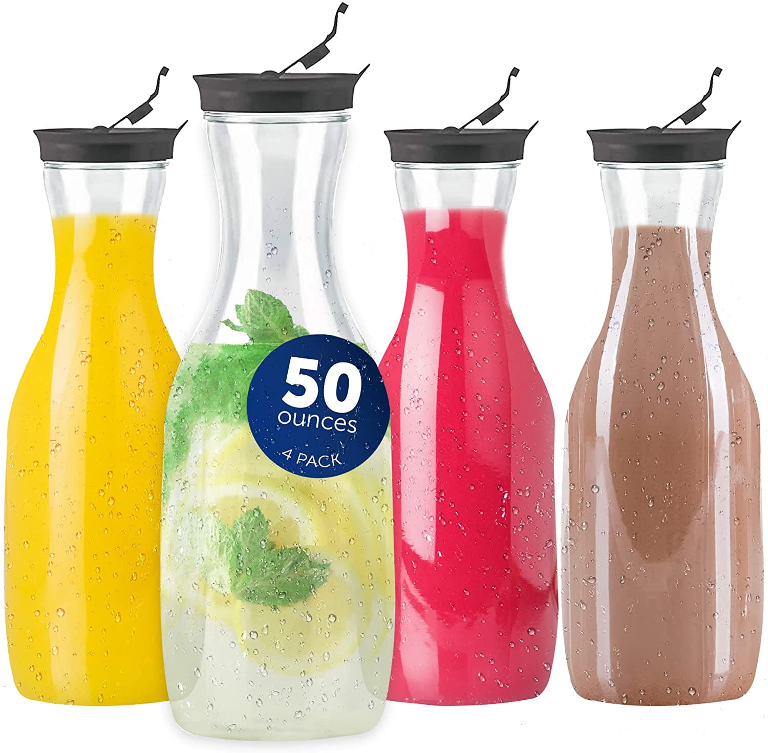 DecorRack 4 Large Water Carafes with Flip Top Lid, 50 Oz Each