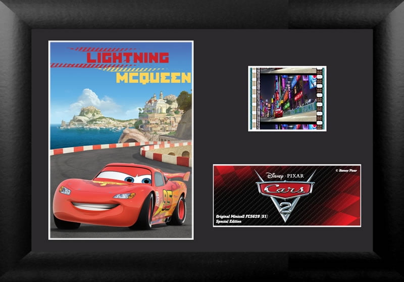 Mater and Lightning McQueen take their friendship to new places when they head overseas to compete in the first-ever World Grand Prix, a multinational exposition race created to determine the world’s fastest car. But soon after Team Lightning McQueen leaves Radiator Springs for this adventure, Mater falls into an intriguing one of his own: espionage.Caught between assisting Lightning McQueen in the high-profile international race and a top-secret spy mission, Mater’s adventure leads him into an explosive chase through the streets of Europe, trailed by his friends and watched by the whole world.7" x 5"35 mm Film Cell ClipsSpecial EditionFramedThe film strip portrayed in the image above is only an example of the film cells you may receive. Please note, the cells may vary from piece to piece because they are hand selected from reels of filmThis item contains clips of film, an image portraying the movie(s), artist(s) or character(s) and a stunning descriptive plaque. These elements have been double mounted and placed within a beautiful black wood frame. Each item comes with an official Trend Setters Ltd. certificate stating its authenticity.Mater and Lightning McQueen take their friendship to new places when they head overseas to compete in the first-ever World Grand Prix, a multinational exposition race created to determine the world’s fastest car. But soon after Team Lightning McQueen leaves Radiator Springs for this adventure, Mater falls into an intriguing one of his own: espionage. Caught between assisting Lightning McQueen in the high-profile international race and a top-secret spy mission, Mater’s adventure leads him into an explosive chase through the streets of Europe, trailed by his friends and watched by the whole world.7" x 5"35 mm Film Cell ClipsSpecial EditionFramedThe film strip portrayed in the image above is only an example of the film cells you may receive. Please note, the cells may vary from piece to piece because they are hand selected from reels of filmThis item contains clips of film, an image portraying the movie(s), artist(s) or character(s) and a stunning descriptive plaque. These elements have been double mounted and placed within a beautiful black wood frame. Each item comes with an official Trend Setters Ltd. certificate stating its authenticity.