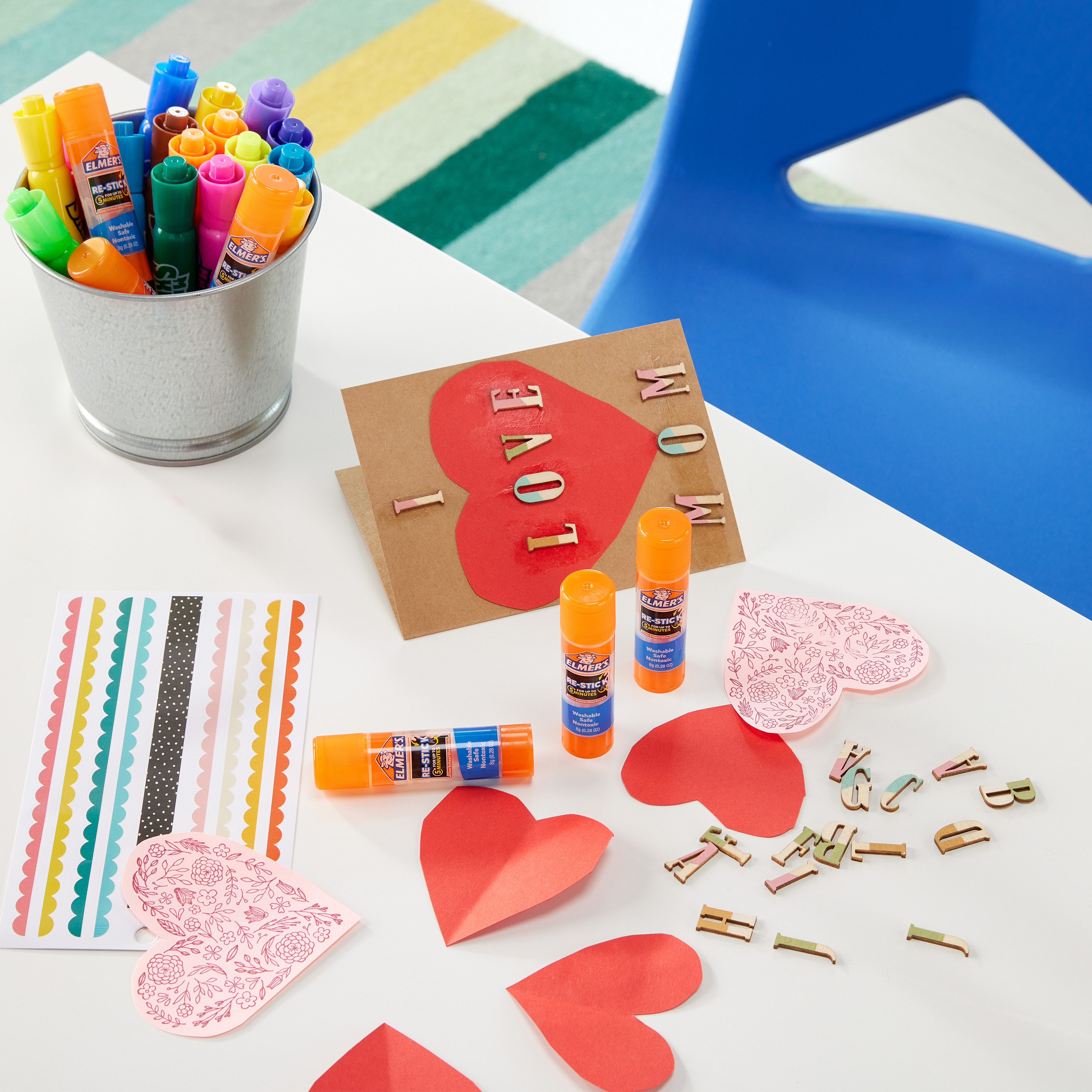 Help your kids learn how to glue in a fun, frustration-free way with Elmer’s Re-Stick Glue Sticks. Repositionable for up to 5 minutes, you can watch kids problem solve and perfect their projects without worrying about a mistake spoiling the fun. This friendly feature also makes the glue sticks great for older students aiming for precise placement of photos and graphs in school projects or science fair displays. Elmer’s re-stickable glue sticks go down smooth, dry clear, and feature a non-toxic, washable, photo-safe formula. It’s no wonder parents and teachers everywhere trust the #1 teachers brand, Elmer’s.