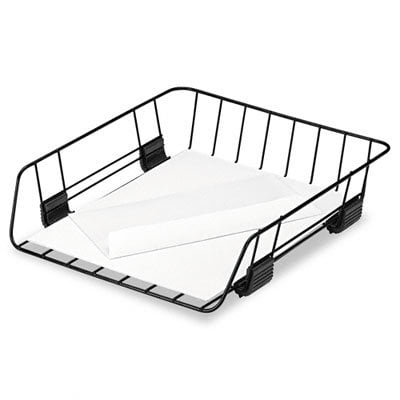 Wire design organizes files and paperwork and offers a quick and easy view of contents. Rubber feet connect trays for stacking and protect desktop. 10 7/8w x 12 5/8d x 2 5/8h. 100% recyclable. Number of Compartments: 1 For File Size: Letter Load Orientation: Front Colors: Black.