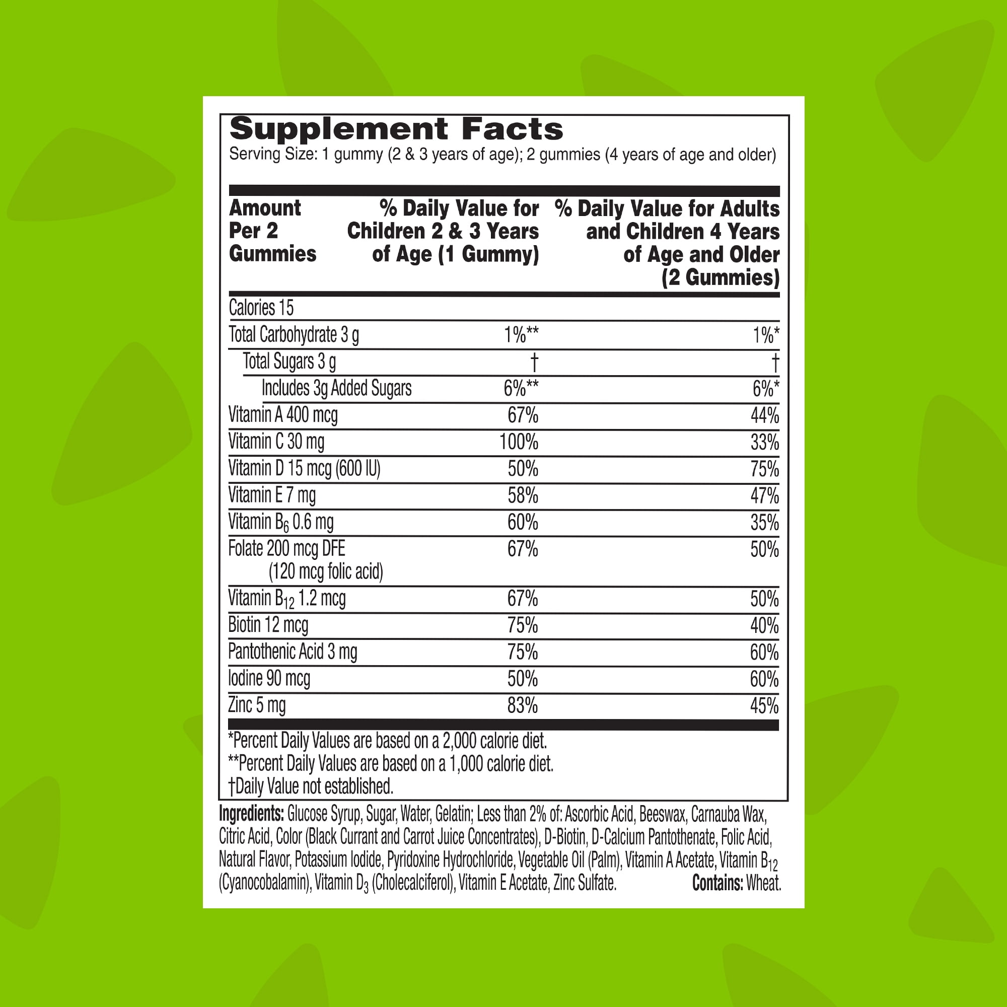 - Directions: Under adult supervision product should be fully chewed. Children 2 & 3 years of age: Fully chew one gummy daily. Adults and children 4 years of age and older: Fully chew two gummies daily