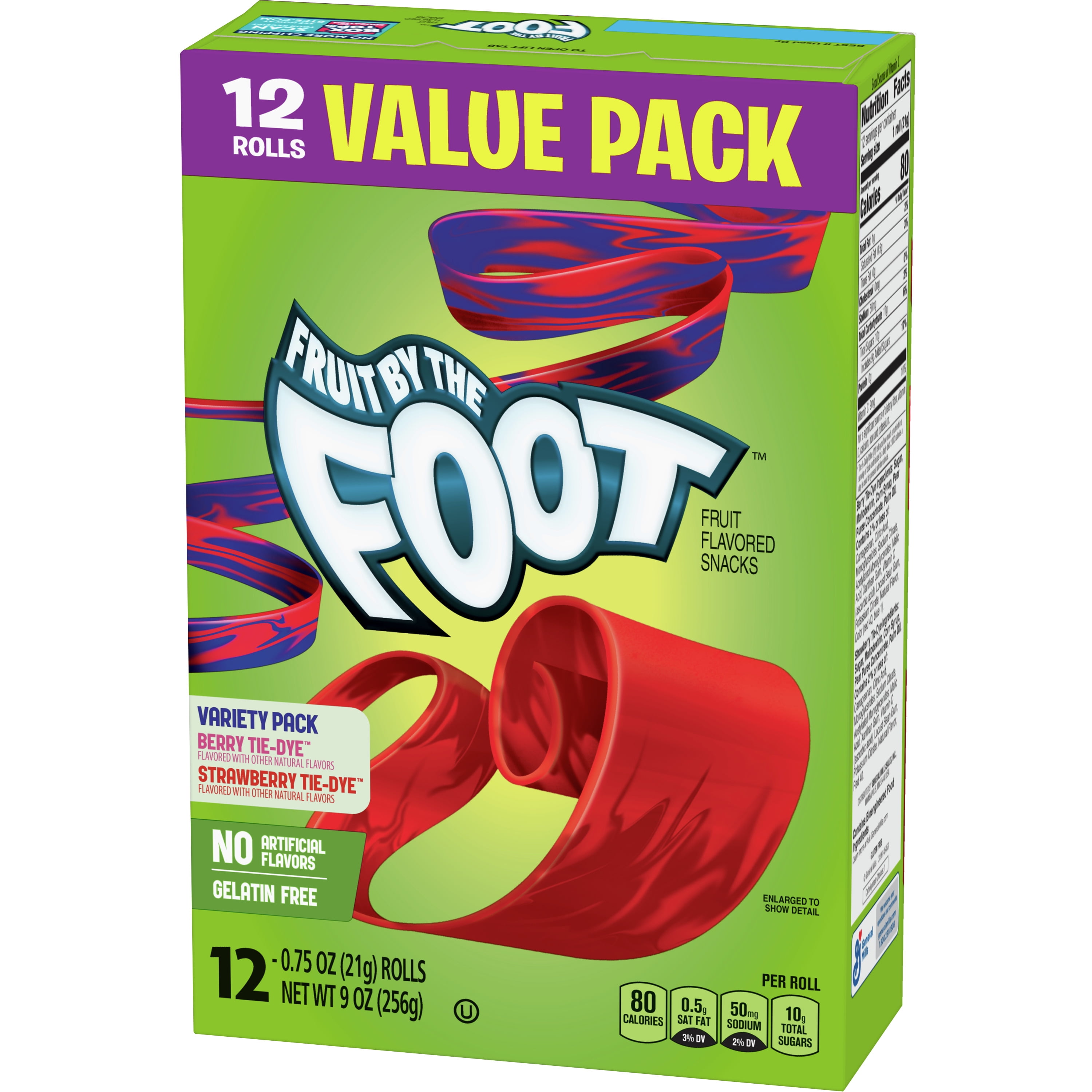 Unwrap a foot-long of delicious fun with Fruit by the Foot Fruit Snacks. Each tasty fruit strip packs a whole lot of berry tie-dye or rainbow punch flavor and is rolled into a coil to create an exciting treat for the whole family. These gluten-free treats contain no artificial flavors and are a good source of vitamin C, so you can feel good about packing them in a school lunch or eating them as an after-school snack. Individually wrapped for on-the-go convenience, Fruit by the Foot Fruit Snacks are sure to be a hit.