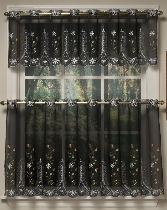 What’s Included: (1) Valance + (2) TiersValance Measures: 58 in. W x 14 in. LTiers Measure: 28 in. W x 36 or 24 in. (Each) 2 IncludedFabric Content: 100% PolyesterDesign: Plaid CheckStyle: Country ChicCare Instruction: Machine Washable, Iron on Lowest Setting as Needed