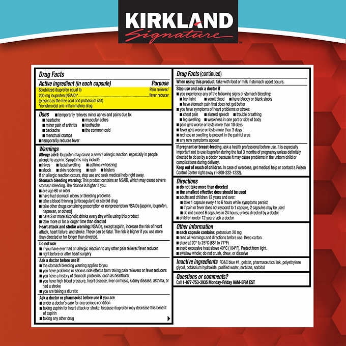 Kirkland Signature Ibuprofen, 200 mg., Pain Reliever/Fever Reducer, 360 Liquid Filled Capsules