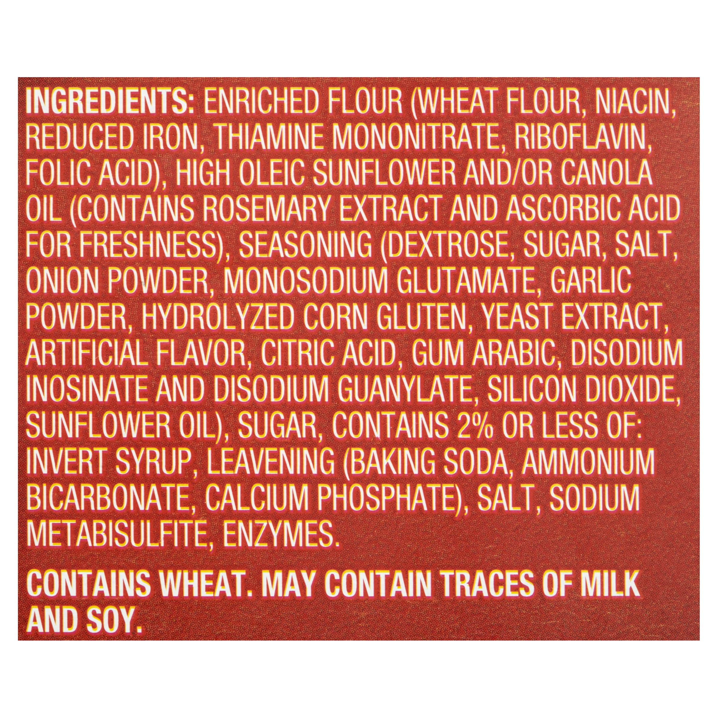 Once you try Great Value Chick’n Bites Baked Snack Crackers, they are sure to become your new favorite savory cracker. Our unique baked wafers are seasoned with garlic, onion, and other spices that will remind you of a tasty bowl of chicken soup. Whether served next to a crock of chili or with a bowl of sour cream dip, they’re an excellent addition to any dinner table. For a delicious appetizer try topping these crisp wafers with cheese spread, sliced meat, and a sprinkle of fresh chives. For a new twist on crackers that packs tons of flavor, grab a box of Great Value Chick’n Bites Baked Snack Crackers.