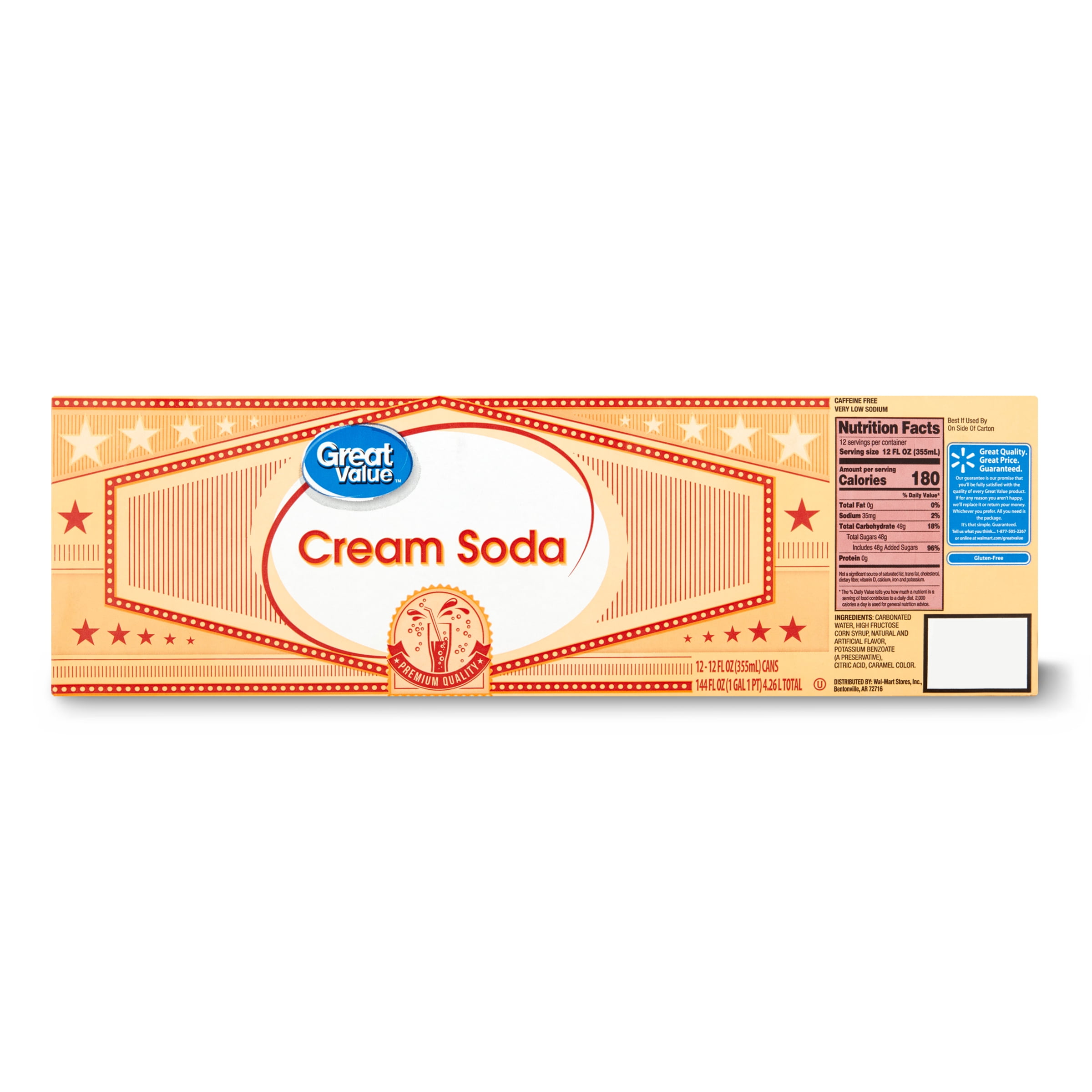 Great Value Cream Soda Pop, 12 fl oz, 12 Pack Cans: