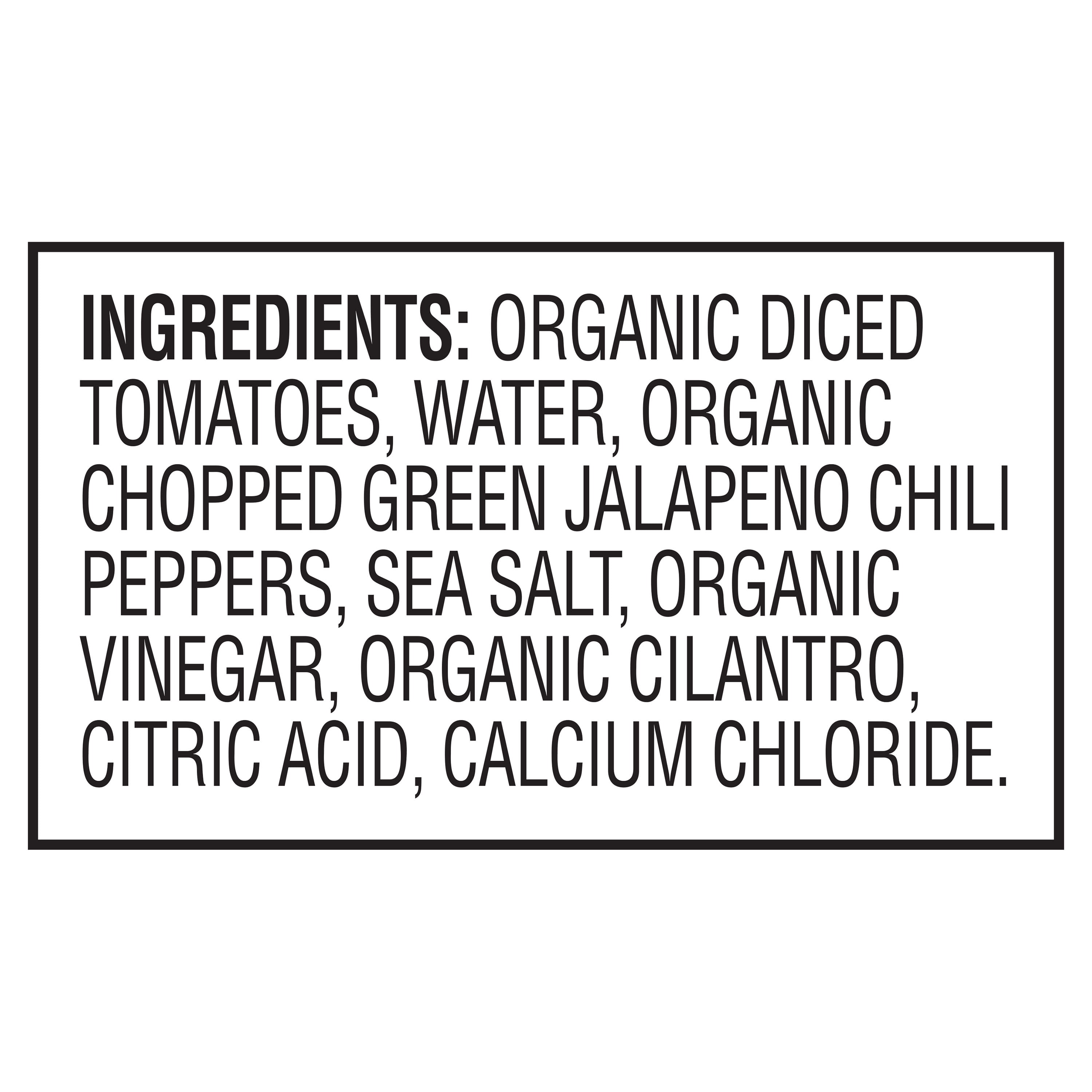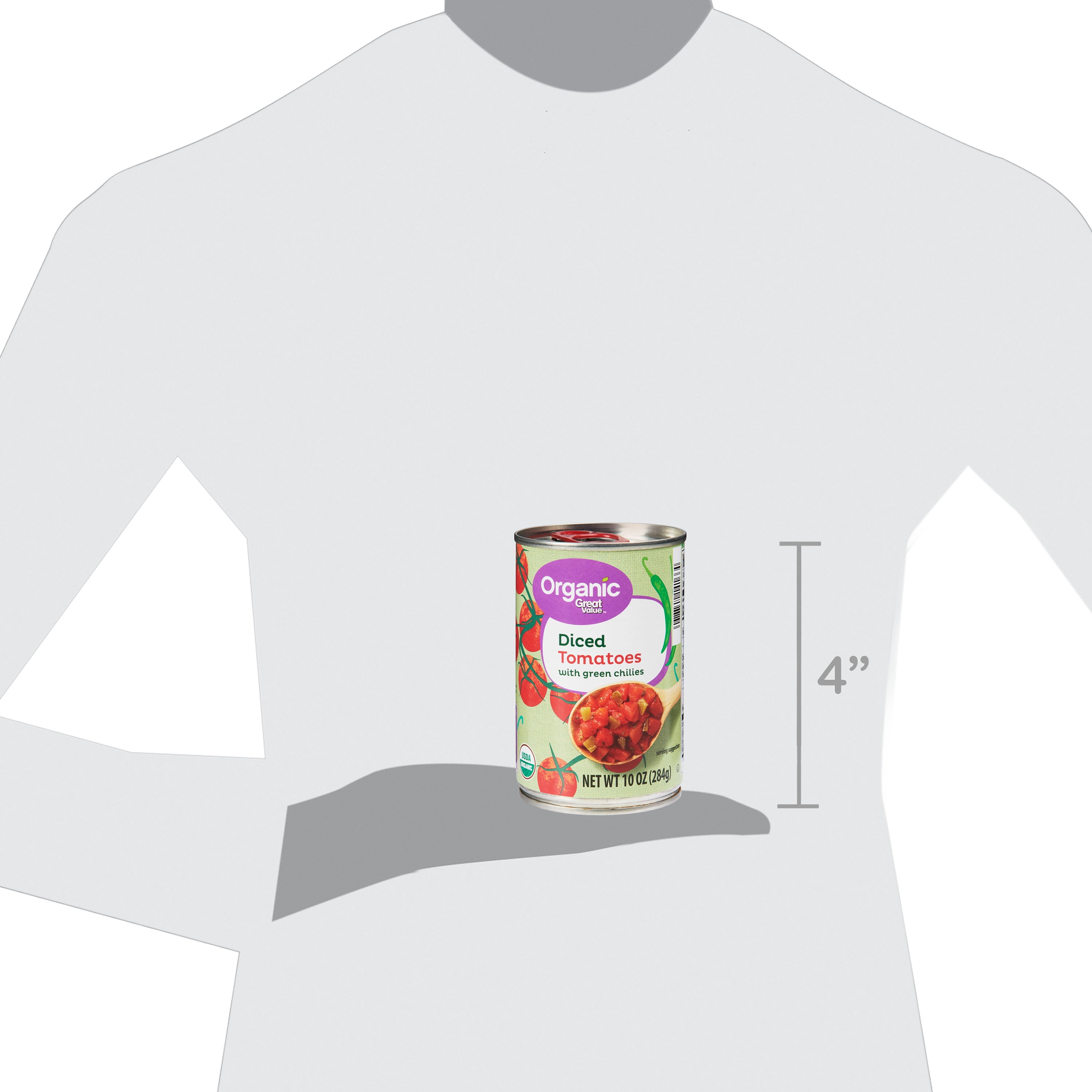 When you are looking to amplify your next homemade meal, look no further than Great Value Organic Diced Tomatoes With Green Chilies. This USDA organic blend of diced tomatoes, chopped green jalapeno chili peppers, sea salt, and citric acid marries the sweetness of freshly picked tomatoes with the spicy kick of peppers without being overpowering. Incorporate them into recipes like pasta sauces, casseroles, pizzas, bruschettas, enchiladas, salsas, and more! Feel confident in the nutritious and delicious flavor provided by Great Value Organic Diced Tomatoes with Green Chilies.Organic Great Value uses only wholesome ingredients with no artificial preservatives to deliver great foods you can trust.Honest taste. Great value.Great Value Organic offers a wide-range of USDA certified organic foods that are hand-selected to meet our high standards as well as yours. We use wholesome ingredients without artificial flavors or preservatives to deliver great food you can trust at an affordable price. Fill your table with organic foods your family deserves without draining your budget.