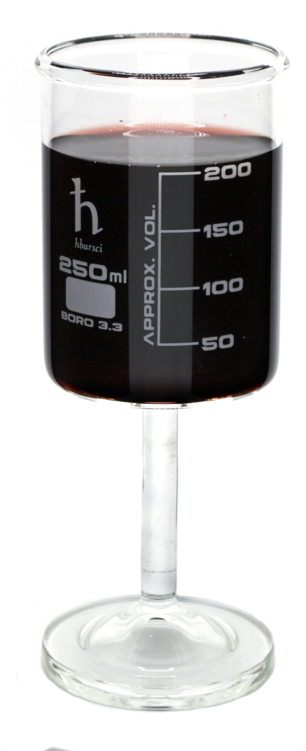 Handmade Beaker Wine Glass, Made of Lab Grade Borosilicate 3.3 Glass – 250mL Capacity, Dishwasher Safe