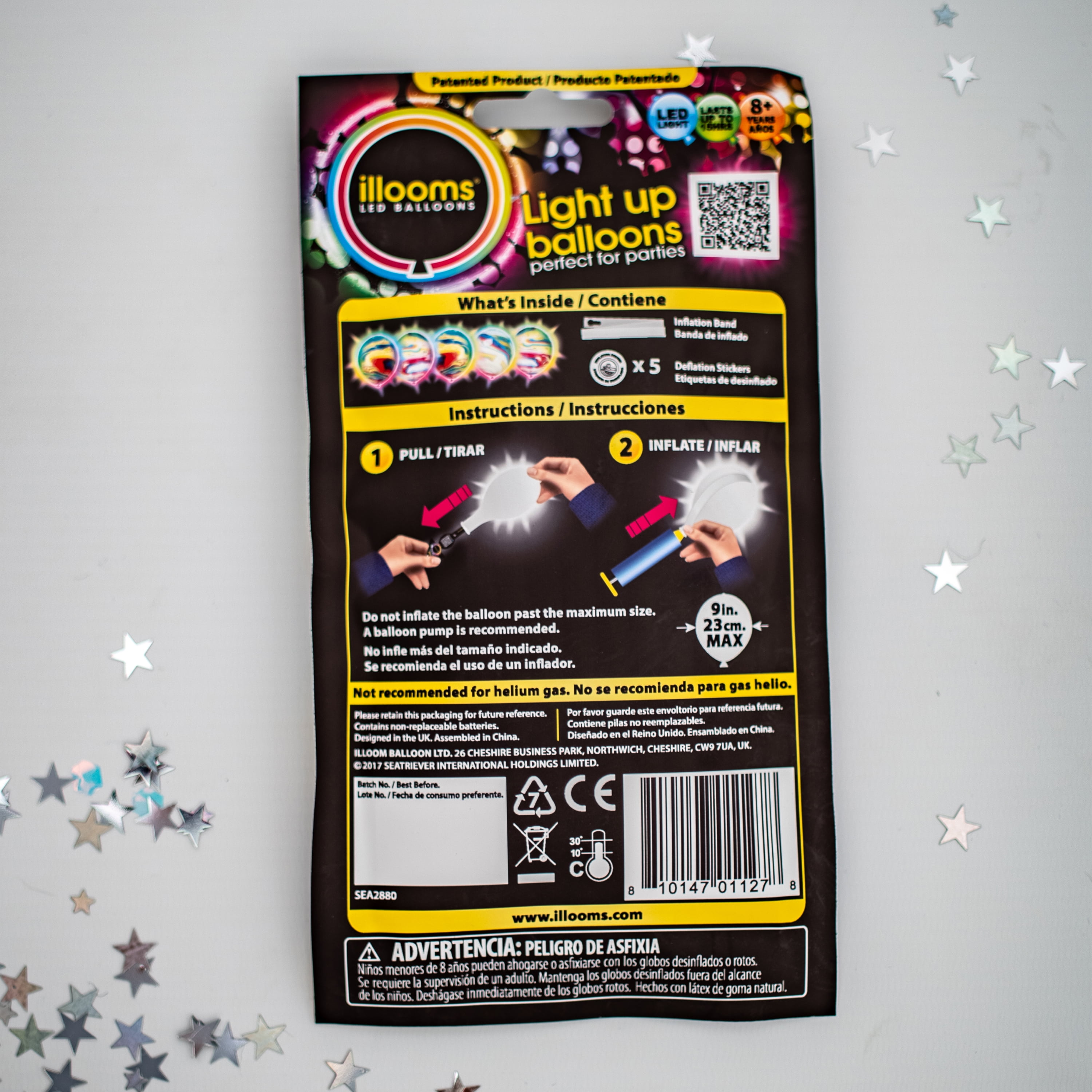 illooms marble balloons will add that unique stand out decoration to your party. A mixed colorful design, that will add an effortless look to your celebration. Our light up marble balloons come in a 5 pack which is perfect whether your celebrating birthdays, outdoor parties, or any special occasion. The colorful balloons are fitted with an integrated LED that illuminates for up to 15 hours! How to use? Simply pull out the tab to activate the LED and inflate the balloon, we recommend using a balloon pump for this illooms.