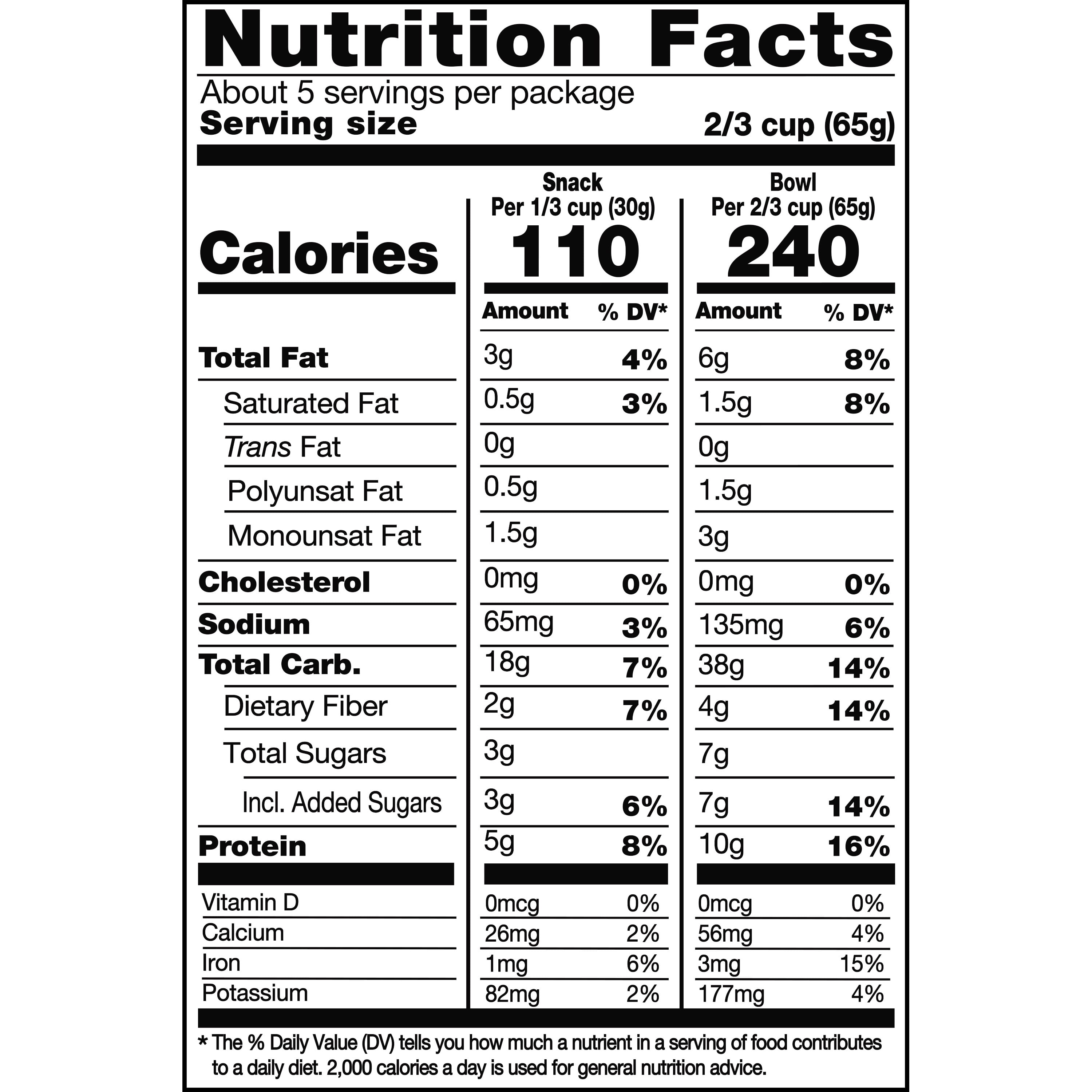 - Healthy snacks that are a good source of fiber* and made without genetically engineered ingredients *Contains 6 grams of fat per serving