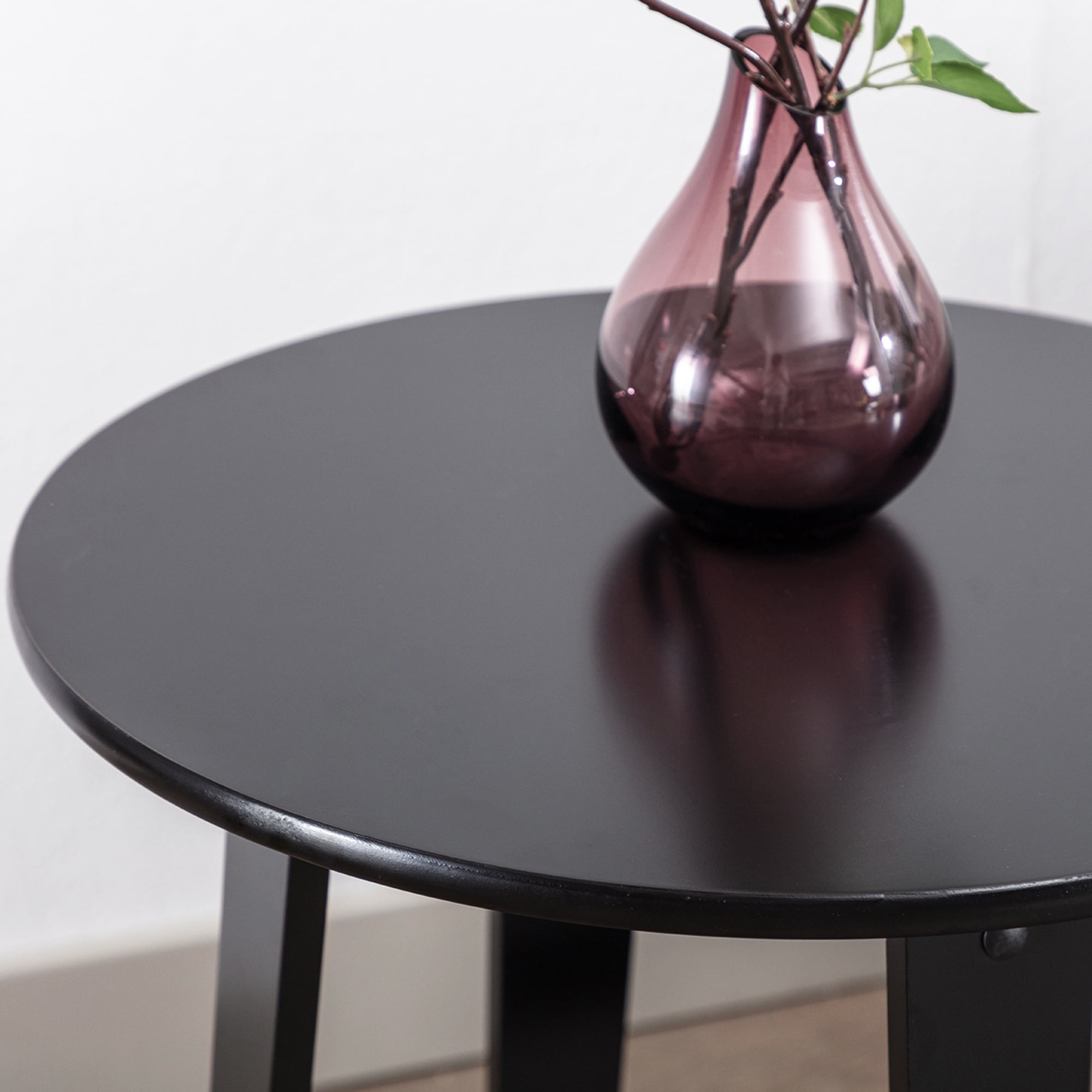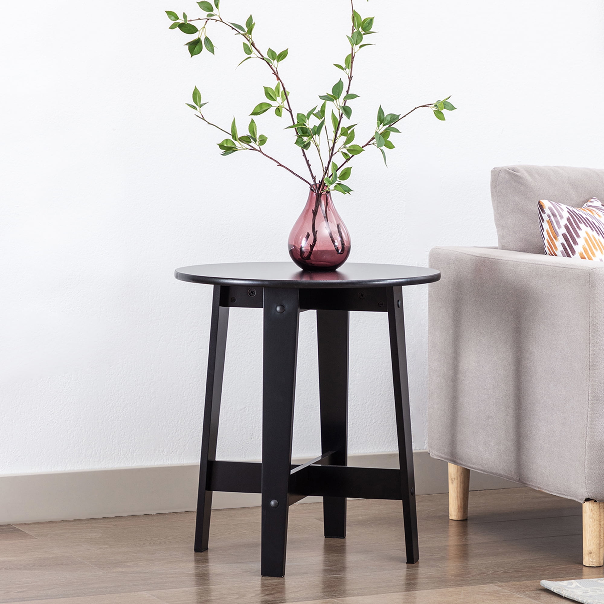 The Mainstays Round Wood Side table is the perfect addtition to your living space with its sleek black design made with a manufactured wood that pairs well with any decorum style. The round shape is sure to add a stylish touch and can be paired with our Mainstays Round Coffee Table! Add your favorite book stack or a fresh floral bouquet on top for a personal design touch!