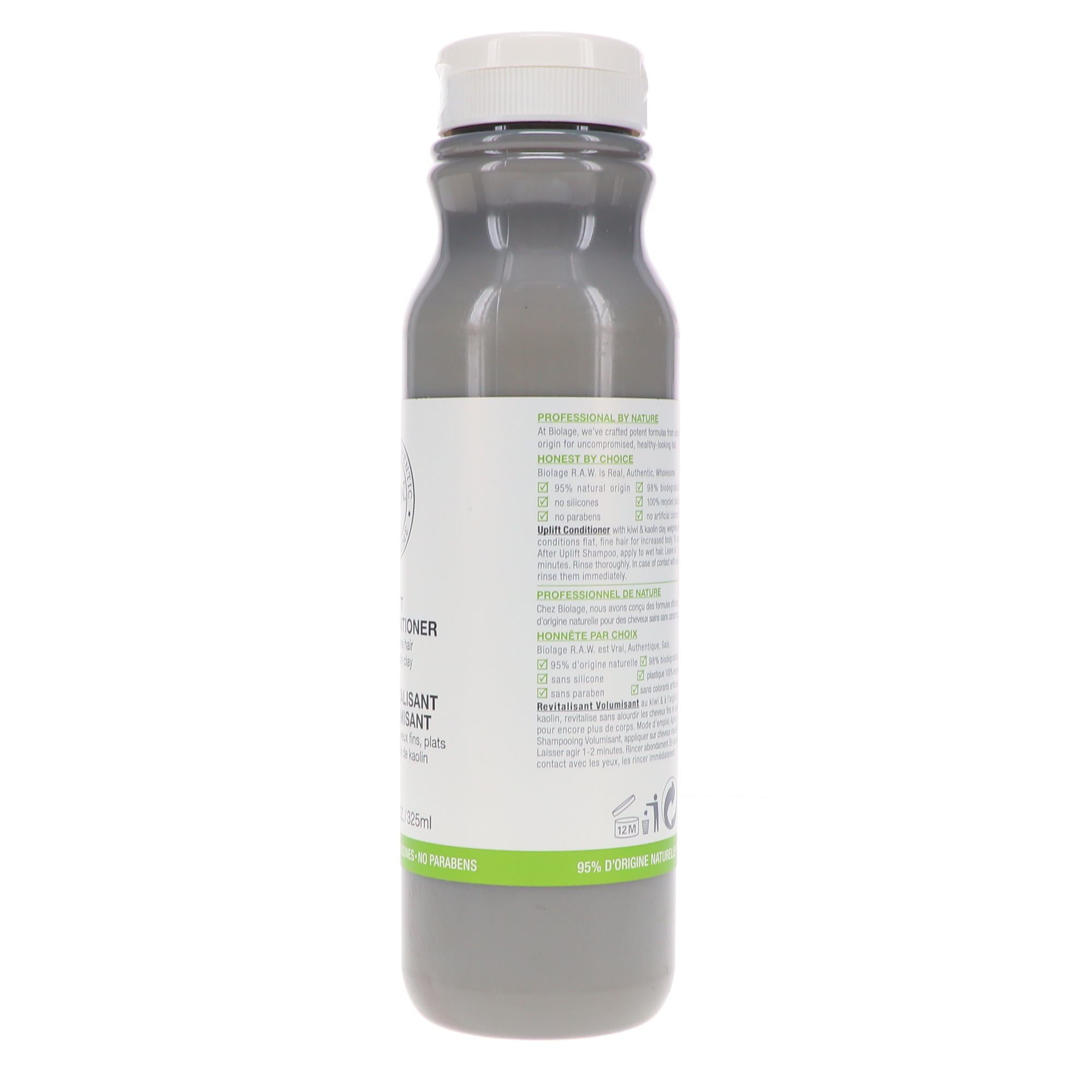 What it is: Biolage R.A.W. Uplift Conditioner with kiwi and kaolin clay, weightlessly conditions flat, fine hair for increased body. What else you need to know: Benefits: 95% natural-origin; 99% biodegradable; No silicones; No parabens; No artificial colorants; 100% recycled plastic Matrix considers an ingredient to be of natural origin if it is unchanged from its natural state or has undergone processing yet still retains greater than 50% of its molecular structure from the original plant or mineral source.; Product Options Available are as follows: Size : 11 oz – Matrix Biolage Uplift Conditioner; Size : 1.7 oz – Matrix Biolage Uplift Conditioner; Size : 33.8 oz – Matrix Biolage Uplift Conditioner;What it is: Biolage R.A.W. Uplift Conditioner with kiwi and kaolin clay, weightlessly conditions flat, fine hair for increased body. What else you need to know: Benefits: 95% natural-origin 99% biodegradable No silicones No parabens No artificial colorants 100% recycled plastic Matrix considers an ingredient to be of natural origin if it is unchanged from its natural state or has undergone processing yet still retains greater than 50% of its molecular structure from the original plant or mineral source. Product Options Available are as follows: Size : 11 oz – Matrix Biolage Uplift Conditioner Size : 1.7 oz – Matrix Biolage Uplift Conditioner Size : 33.8 oz – Matrix Biolage Uplift Conditioner