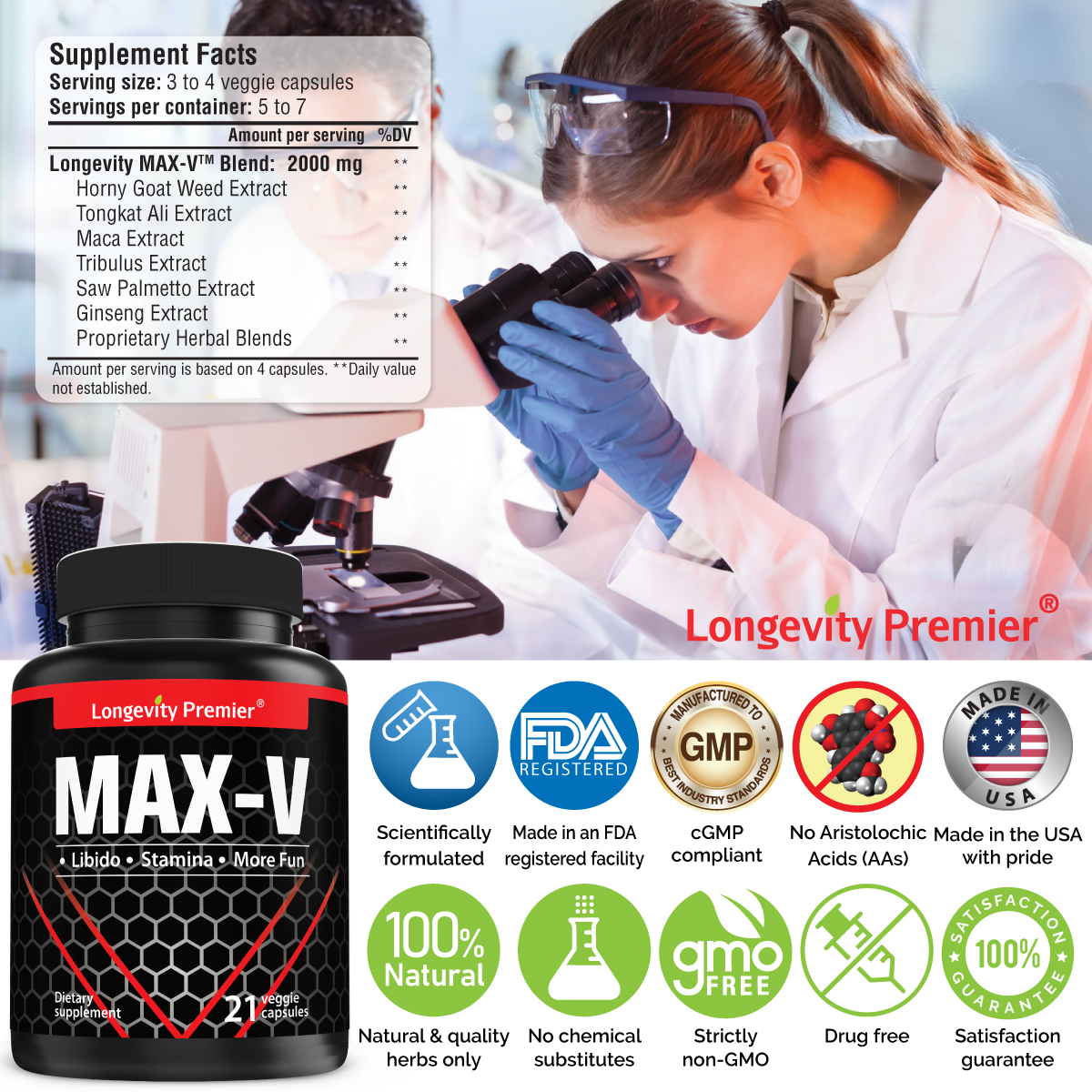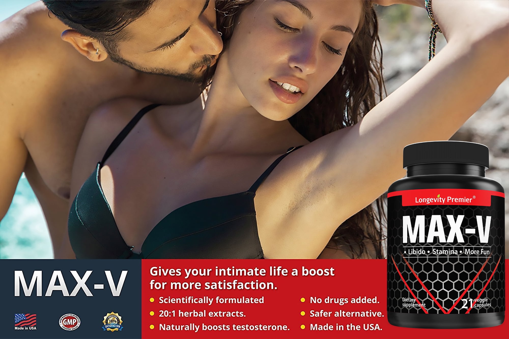 - NATURALLY BOOTS TESTOSTERONE & INCREASES LIBIDO – Testosterone levels peak in the mid-20s. Researches show that men’s testosterone level decreases by about 1% per year and then drop faster when elder. While testosterone decreases with age, passion and desire normally do not. Max –V Performance Enhancement helps to close the gap between desire and performance by boosting the testosterone and the body’s sexual response.
