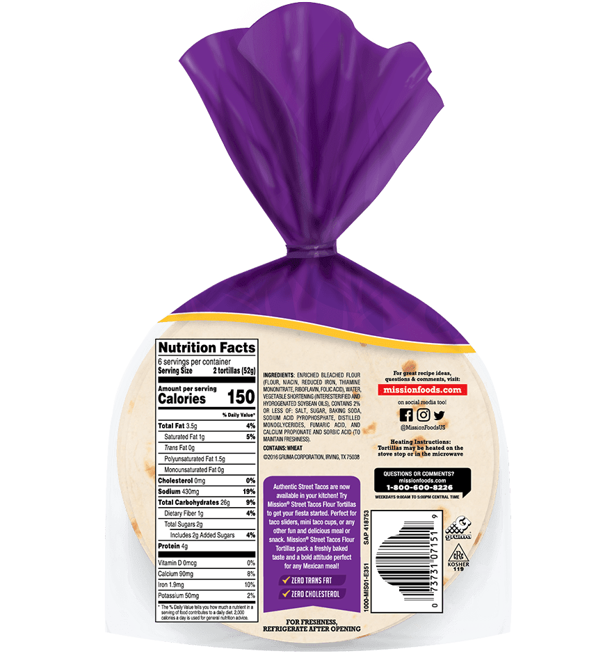 - Two 12 count package of Mission Street Taco Flour Tortillas