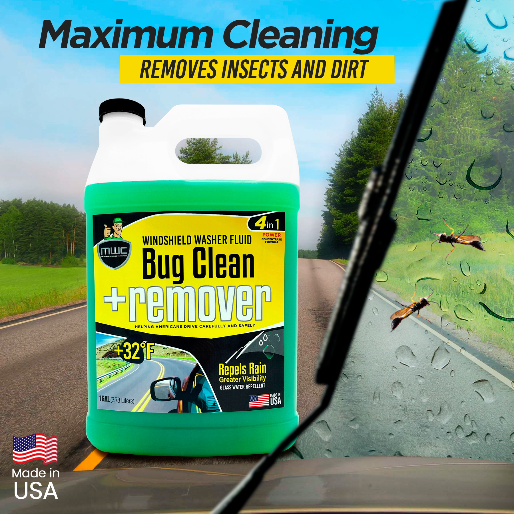 - MWC Windshield washer fluid penetrates, breaking down and remove the toughest residues.