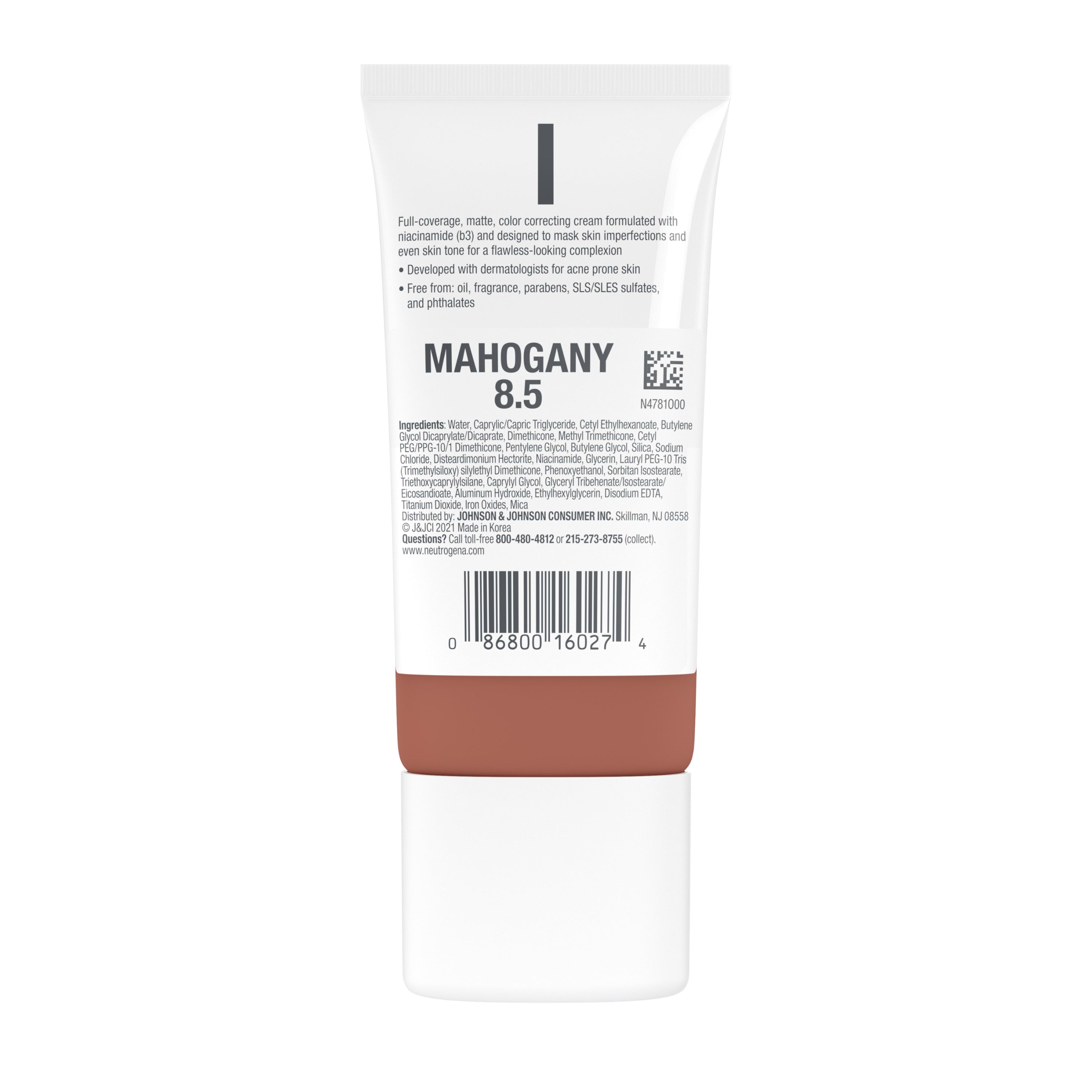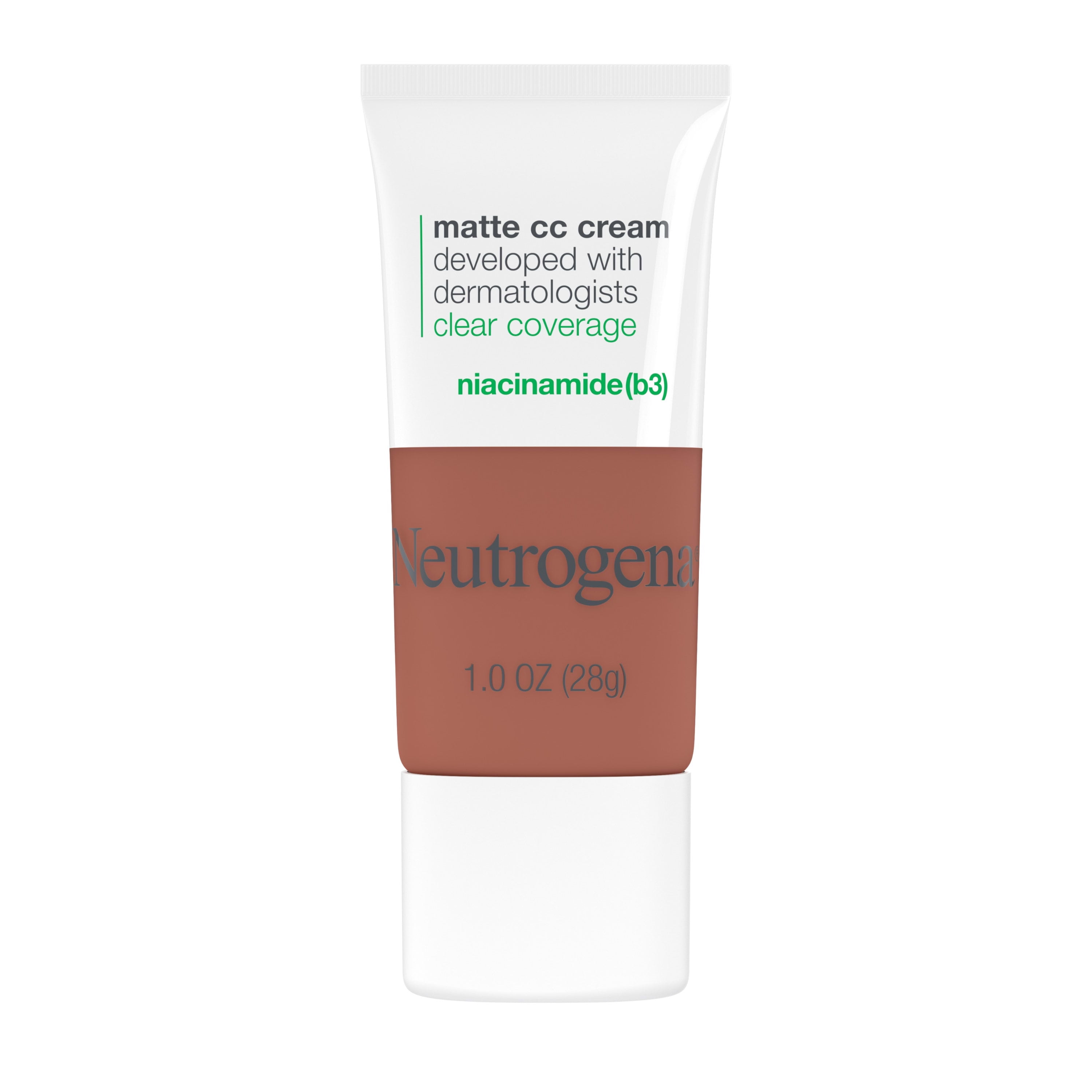 Get a flawless looking complexion with Neutrogena Clear Coverage Flawless Matte CC Cream. Available in 34 natural-looking shades, this color correcting cream makeup from a dermatologist recommended brand provides full, matte coverage, designed to mask imperfections and even skin tone. The mattifying foundation was developed with dermatologist for acne prone skin and is formulated with niacinamide (b3) and is hypoallergenic, free of oil, fragrance, parabens, and phthalates. This breathable formula feels comfortable on skin, blurs the look of discoloration and redness, and leaves skin feeling soft and smooth.