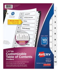 New Avery Ready Index Tab Titles, 10-Tab, 1-10, Black/White, 10 per Set ,Each