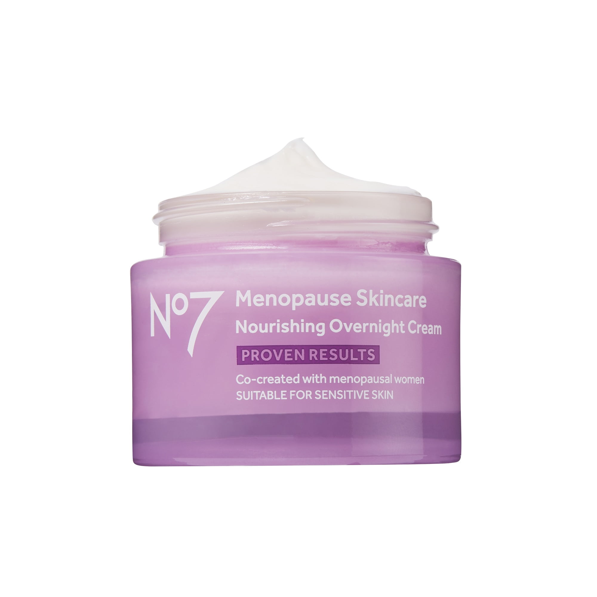 No7 Menopause Skincare Nourishing Overnight Cream helps dry & sensitive menopausal skin feel deeply hydrated, for a healthy looking glow.