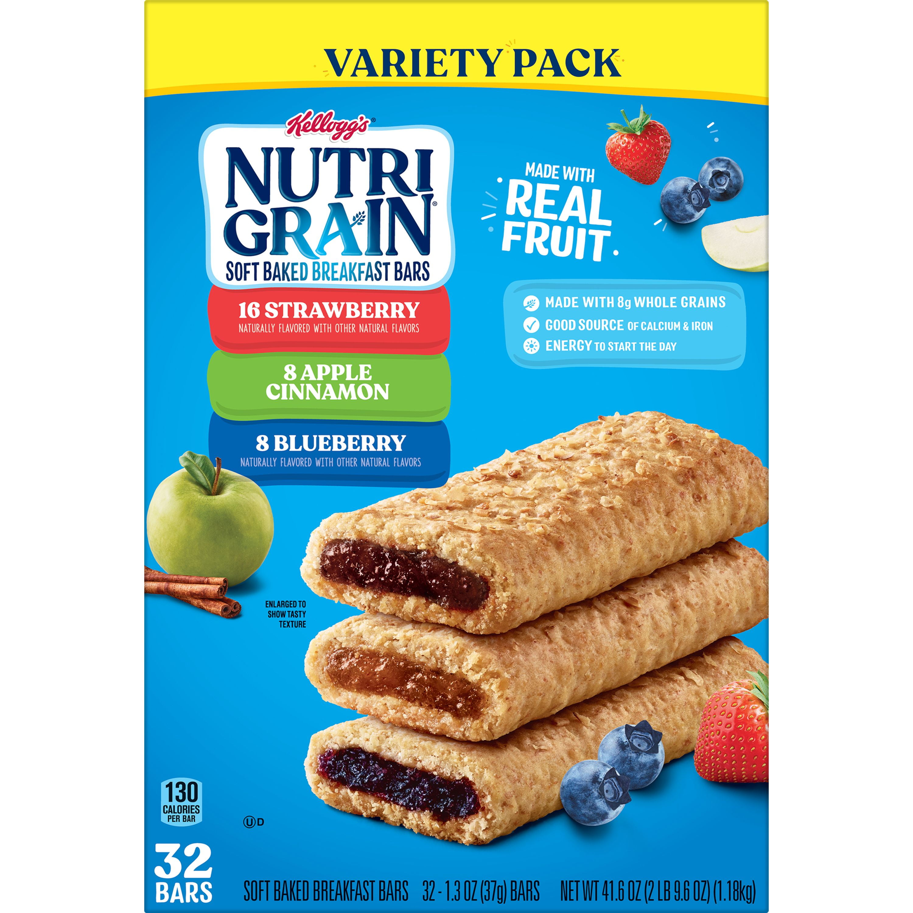 - Includes 1, 41.6-ounce variety pack box containing 32, 1.3-ounce ready to eat soft baked breakfast bars; Packaged for convenience, freshness and great taste