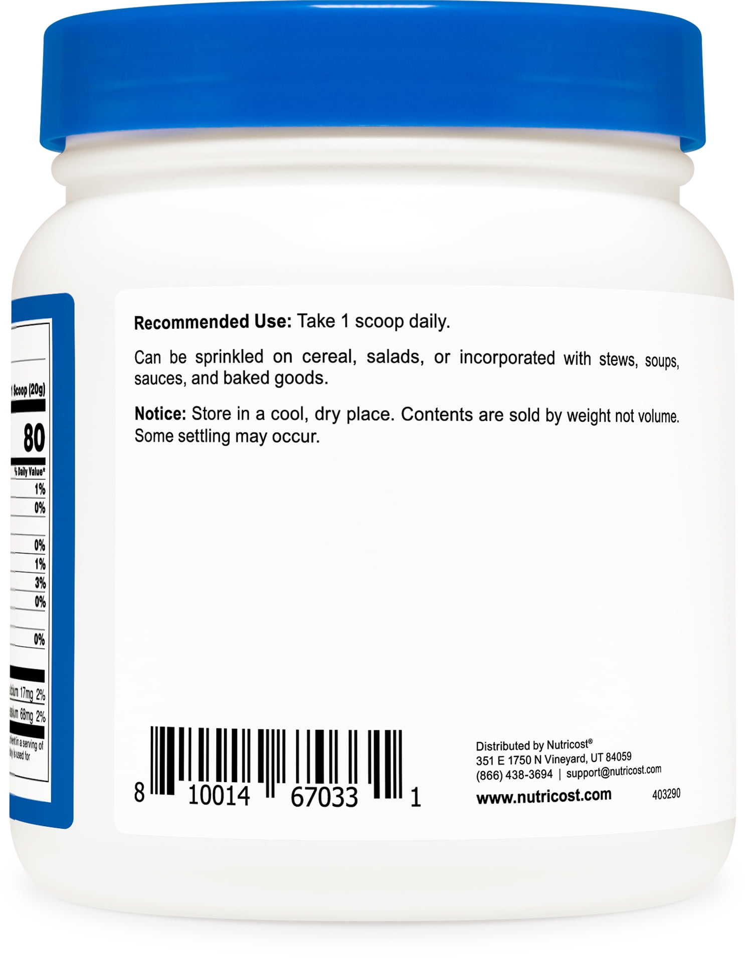 Nutricost Brewer’s yeast is a one sell fungus known as Saccharomyces cerevisiae. Use Brewer’s Yeast Powder in baked goods, or on top of cereals or salads. Also it can be used by blending it into smoothies. This brewers yeast is derived from molasses and is unflavored, and unsweetened causing it to be naturally bitter. For healthy individuals 18 years and older. Consult a healthcare professional prior to use if you are pregnant or nursing, taking medication, or have a medical condition. Keep out of reach of children. Do not use if safety seal is broken or missing.