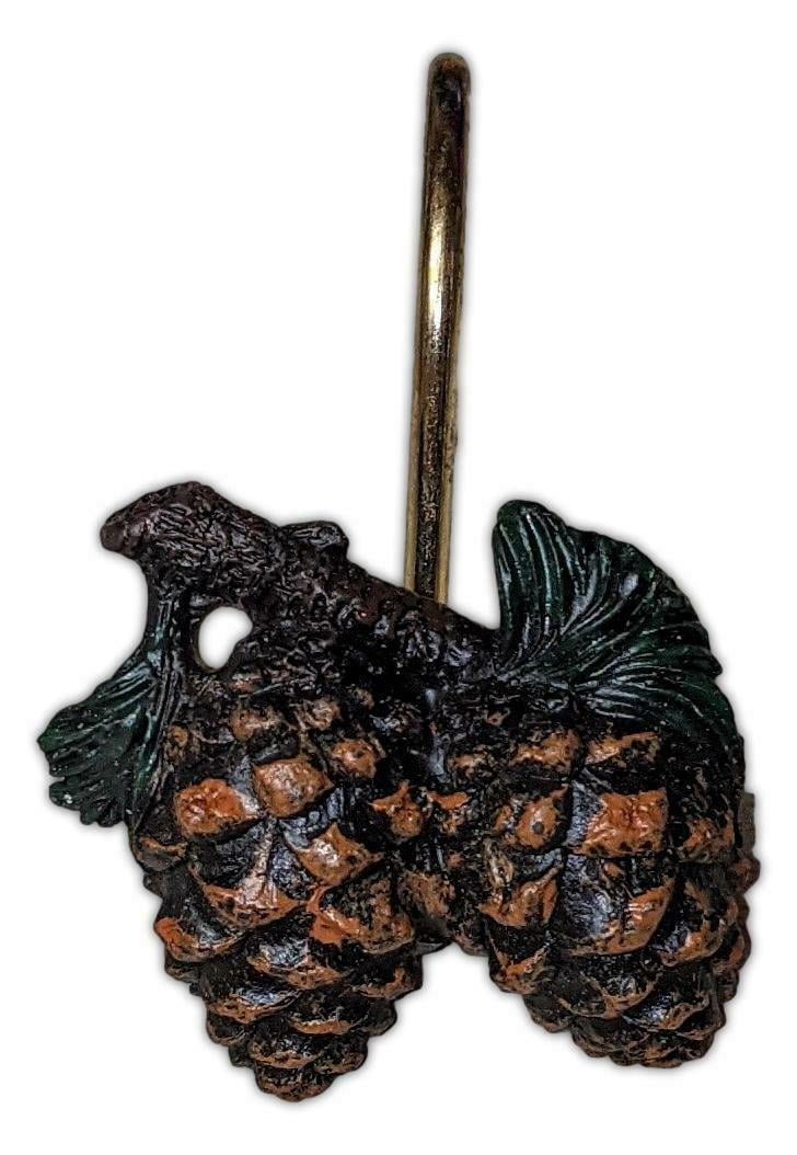 Primitive PINE CONES Shower Curtain Hook Set, 12 Pieces, by Wilcor