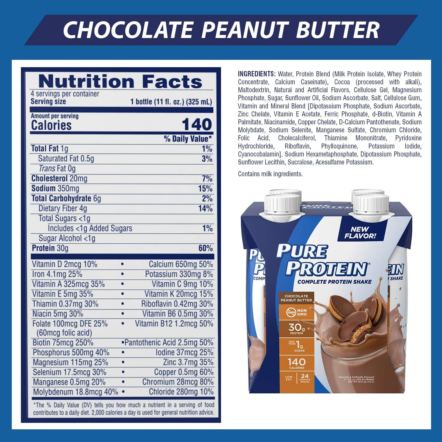 - Pure Protein Shake, Ready to Drink High Protein Shake, 30G Protein, Chocolate Peanut Butter, 4 Pack: