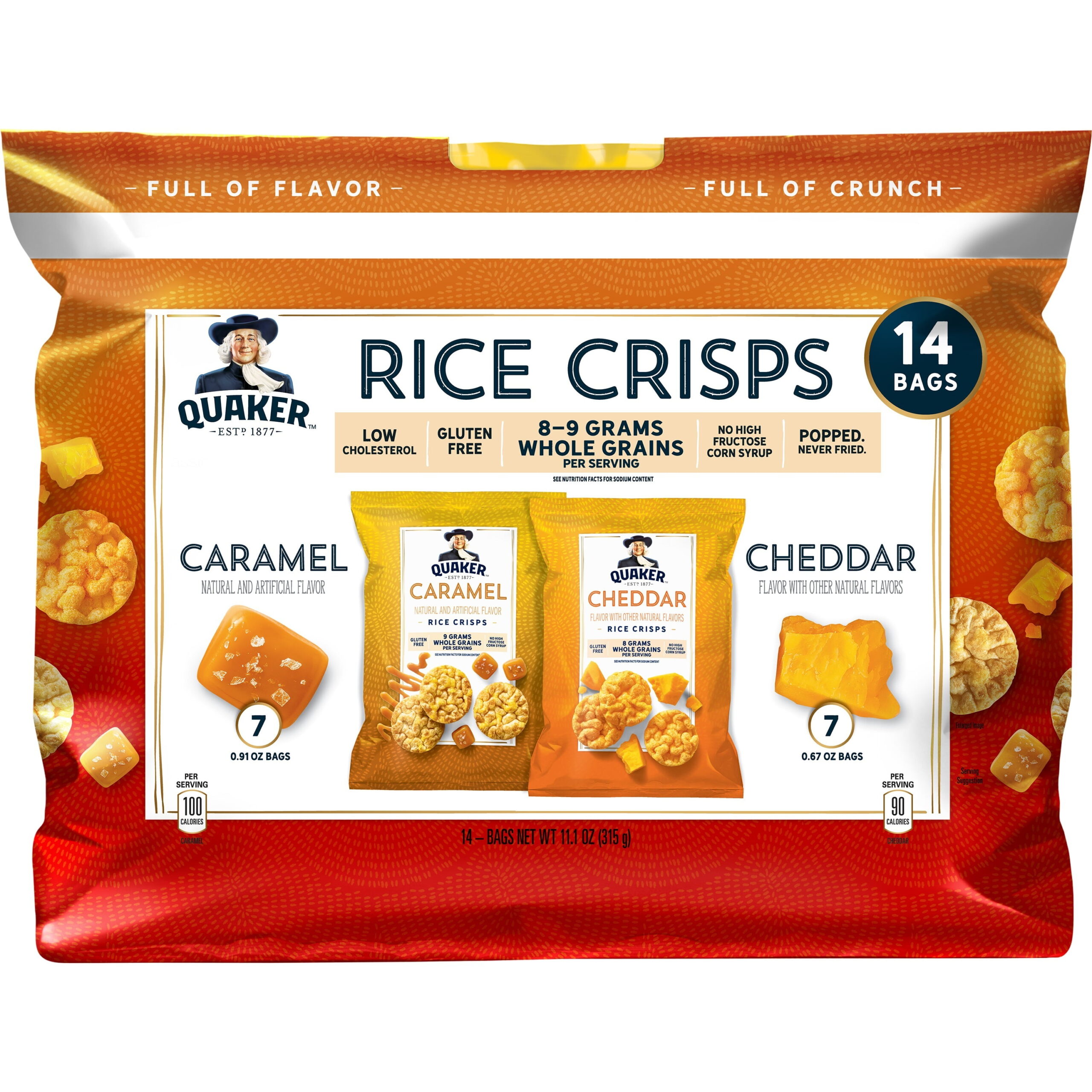 Quaker Rice Crisps Variety Pack, Cheddar & Caramel, 14 Count