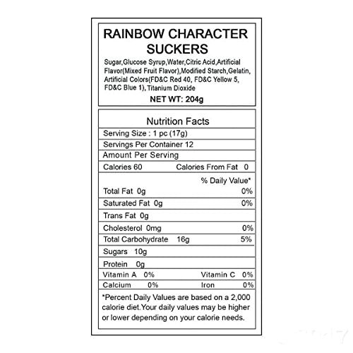 Somewhere over the rainbow there are delicous lollipops for everyone. Throwing a rainbow theme birthday party. Use these colorful suckers in your goody bags or leave them on tables to double as decorations. Each lollipop is hand decorated so designs will vary slightly.© OTC• Mixed fruit flavored.• Individually wrapped.• Includes 2" suckers on 4" plastic sticks.• Total wt 7 oz.• Assortment may vary.• Fat-free.• Ingredient nutrition allergen and other product information are provided on our Web and Mobile sites for reference purpose only without warranty or representation as to accuracy. Manufacturers adjust their labeling regularly and are solely responsible for the accuracy of the information. For general questions concerning these items please contact our customer service at 800-228-0475.