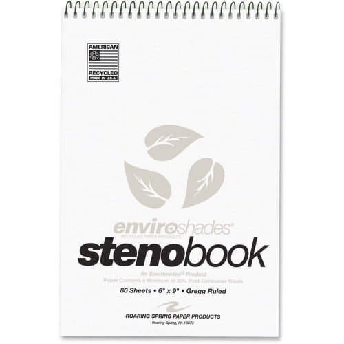Roaring Spring Enviroshades Recycled Spiral Steno Memo Book, 4 Pack, 6 80 Sheets – 160 Pages – Printed – Spiral Bound – Both Side Ruling Surface – Gregg Ruled Red Margin – 15 lb Basis Weight – 56 g/m&