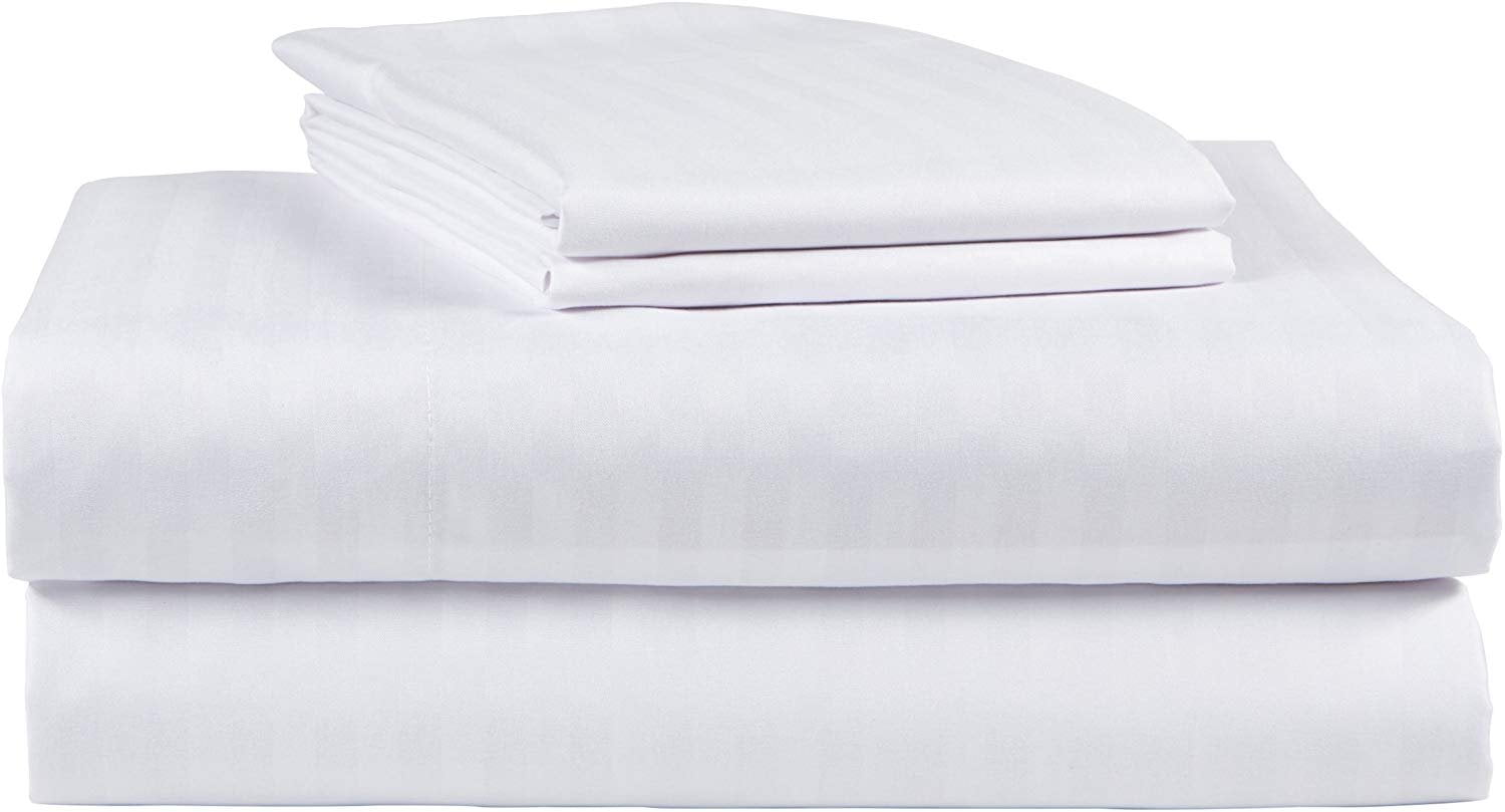 Each set contains a flat sheet, a fitted sheet that will fit a mattress up to 15" and two pillowcases. Machine wash, gentle cycle. Tumble dry low. Available in Queen size, and King size. Beige, Coffee, Light Blue, Sage, Silver,and White. LUXURIOUS QUEEN SIZE SHEET SET DOBBY STRIPE 500 THREAD COUNT 100% cotton sateen DEEP POCKETS SHEET SET CONTAINS; 1 QUEEN FLAT SHEET 1 QUEEN FITTED SHEET 2 STANDARD PILLOW CASES SELLS IN STORES FOR $99.99 SOFTEST SHEET SET YOU WILL EVER SLEEP ON!! MACHINE WASHABLE, DEEP POCKETS FITS UP TO 15 INCH MATTRESS, NO IRONING NEEDED!!!!!!!!! Heavy Weight 100% Cotton Sateen Sheet Set Deep Pocket!!! Wrinkle Free Dobby Stripe Sheet Set!!! fits mattresses up to 15" Elastic all around for a perfect fit Machine wash, gentle cycle. Tumble dry low