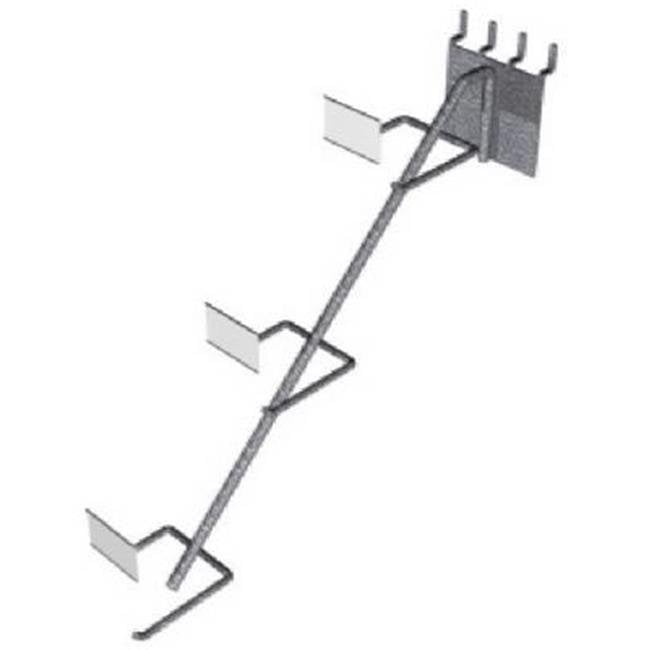 – SKU: TRVAL70605Pot & Pan, 3 Tiered, Angled Down Design Peg Hook Display Rack, Powder Coated Black, Use On Pegboard, Slatwall & Slatwall Grid.