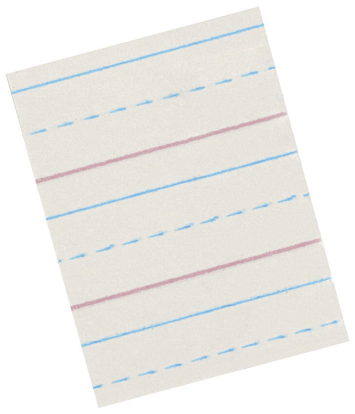 School Smart Red and Blue Ruled Newsprint measuring 10-1/2 x 8 features white ruling with red baseline, light blue mid-line and heavy blue headline. Primary grades 2 – 3 newsprint with 1/2 in ruling has 1/4 in broken midline and 1/4 in skip space. Long way ruled handwriting paper conforms to Zaner-Bloser style and is sold as 500 sheets per ream.