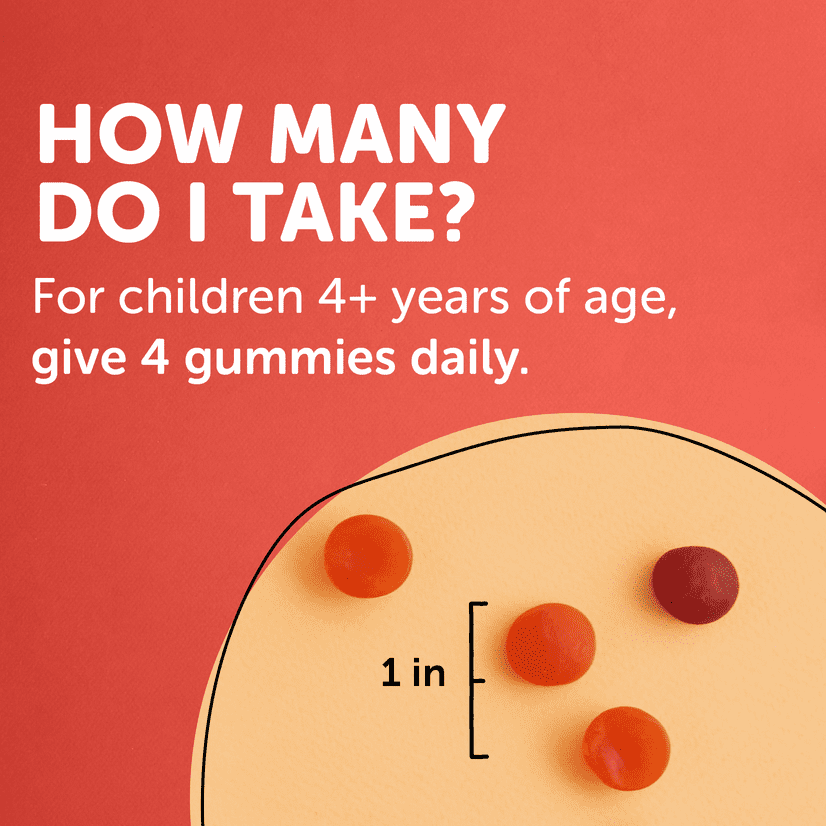 - For children 4+ years of age, take 4 gummies daily. May be taken with or without food