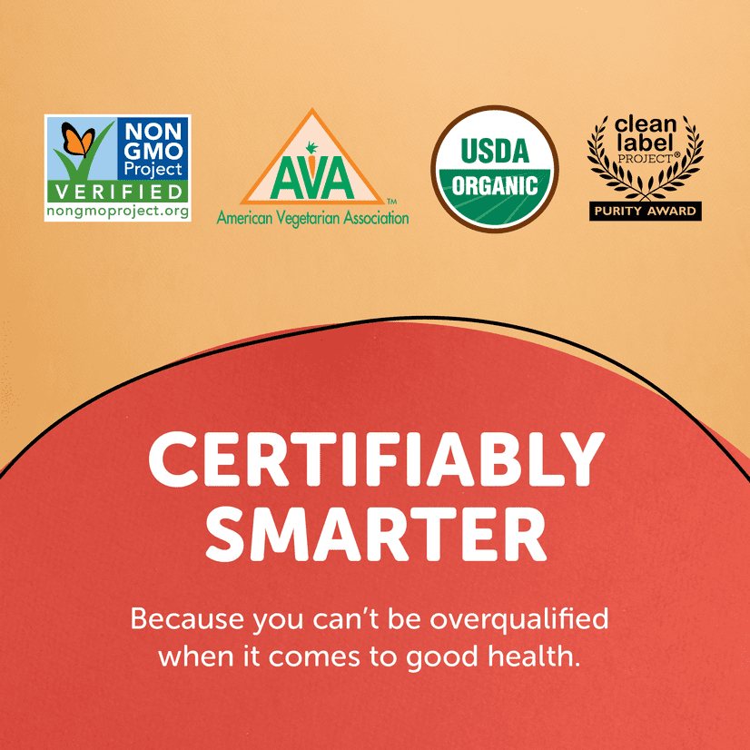- Certified Organic and vegetarian. Includes vegetarian omega-3 α-Linolenic acid, sourced from organic flaxseed oil