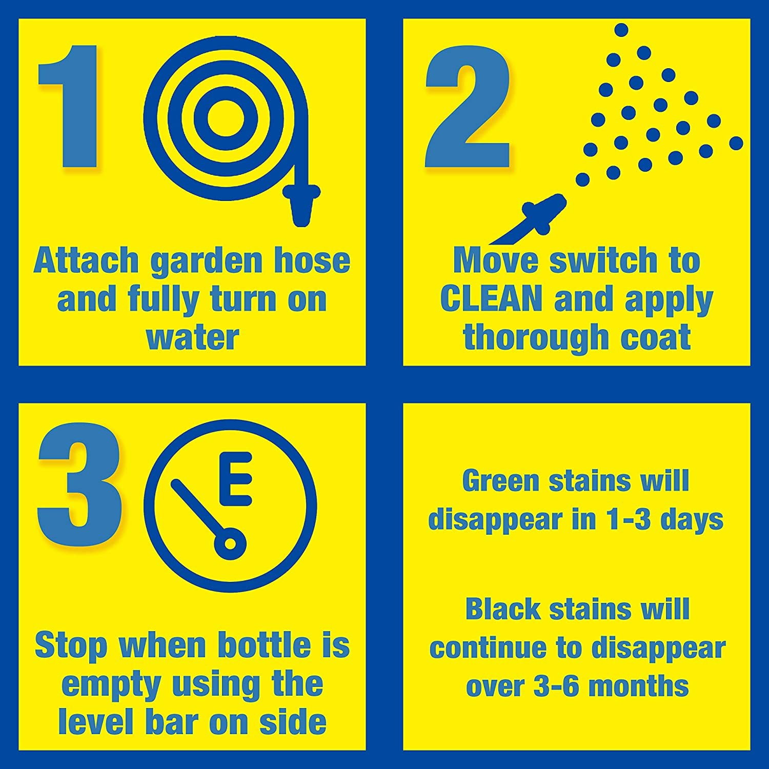 - Follow directions carefully for use. Apply Spray & Forget every 6-12 months or at the first sight of new staining.