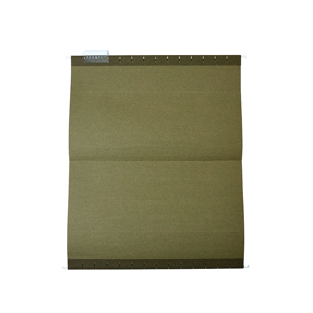 - Standard green hanging folder made of tea- resistant paper stock with durable coated hooks. Hanging file folder will fit in a file drawer or desktop filing system. Includes tabs and inserts.
