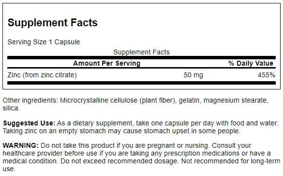 Swanson Health Products has a lot of quality options when it comes to zinc, but more customers today are requesting Zinc Citrate than any other available form. Maybe it’s because healthcare professionals routinely recommend this form for optimum absorption. Maybe it’s because it’s so affordable. Regardless, we’re pleased to offer this Zinc Citrate with 50 mg of zinc in each capsule.