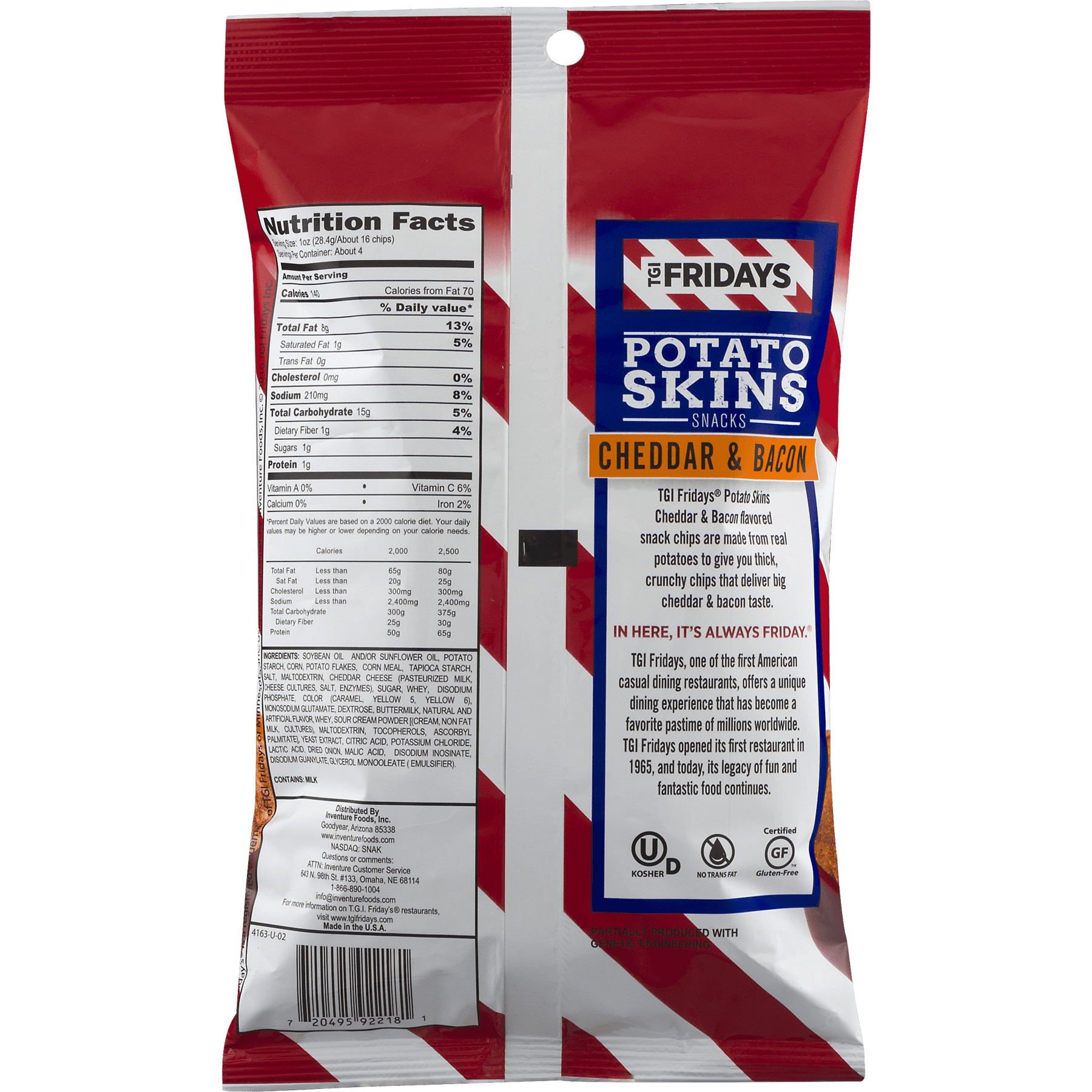 TGI Fridays Potato Skins Snacks Cheddar & Bacon, 4.0 Oz