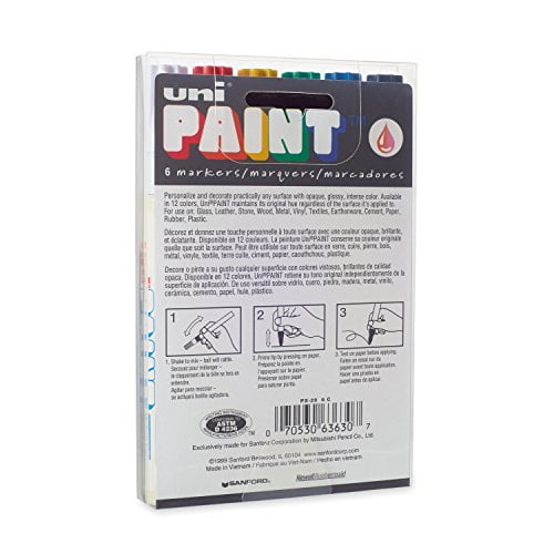 Unleash your inner artist with uni-paint permanent markers. Valve- action marker writes on virtually any surface – glass, metal, wood, rubber, stone, plastic, paper, vinyl, leather, canvas and more. Quick drying ink marks opaque and glossy on light and dark surfaces. The archival-quality, acid-free, oil-paint ink is fade, water, and abrasion-resistant, ideal for projects that need to last. Ink is permanent and certified AP-non-toxic.