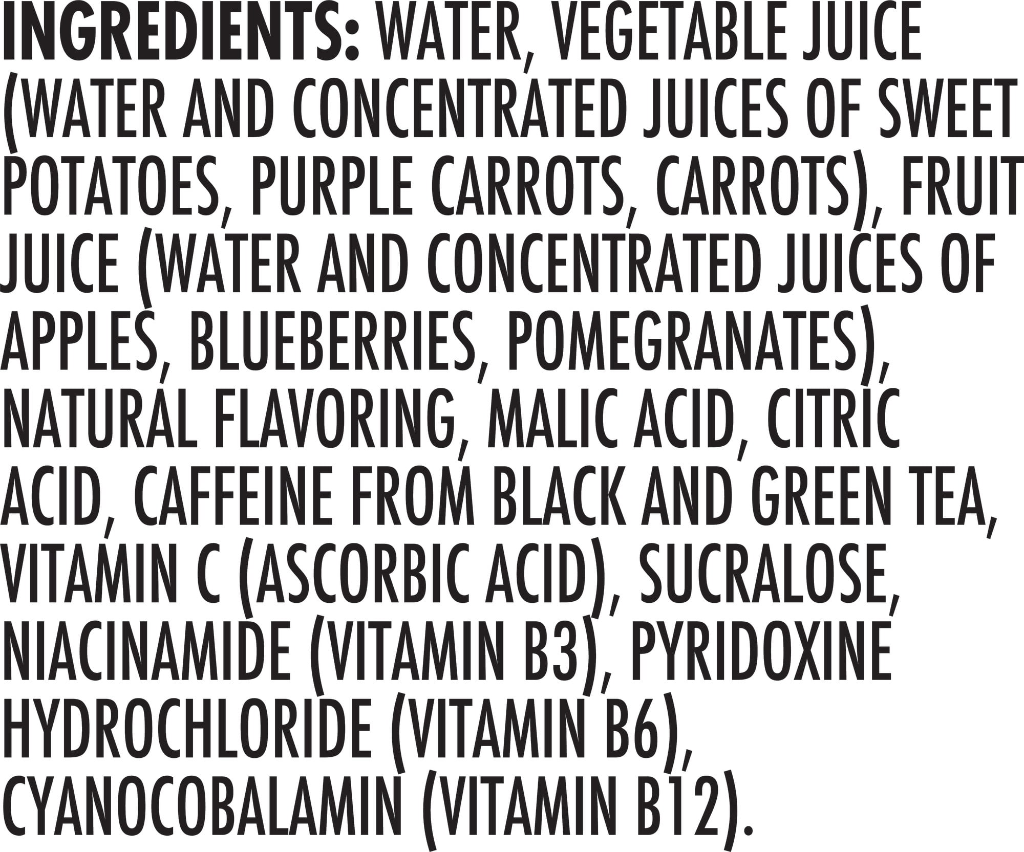 V8 +ENERGY Pomegranate Blueberry Energy Drink gives you the plant based energy you need. Infused with tart pomegranate and juicy blueberries, this energy drink features a blend of juices, plus steady energy from black tea and green tea gives you roughly the same amount of caffeine as a cup of coffee and other caffeinated drinks. Non-GMO, gluten free V8 energy drinks are made with no added sugar*, and no high fructose corn syrup. Each 8 fl oz serving of this caffeine drink contains one combined serving of vegetables and fruit, and it’s an excellent source of B vitamins. Enjoy a V8 energy drink for breakfast, or take this energy drink on a busy day out. V8 +ENERGY drinks can be a delicious workout drink. These V8 +ENERGY drinks can be enjoyed chilled or at room temperature.In addition to Pomegranate Blueberry, V8 +ENERGY energy drinks are also available in Wild Berry, Strawberry Banana and other delicious flavors. For steady energy with a lightly carbonated twist, try V8 +SPARKLING ENERGY drinks.*Not a low calorie food – see nutrition facts panel for sugar and calorie content