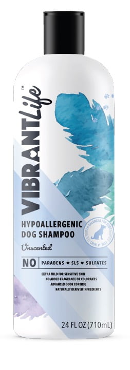 Vibrant Life Hypo Shampoo for Dogs is made to lock in shine and give your dog’s coat a deep that keeps them smelling fresh. This 24oz bottle includes no added fragrances or dyes, and is pH balanced for a dog’s unique skin needs to help keep dogs’ skin healthy and clean. Help your pets live the Vibrant Life! Our products are specially crafted with one goal in mind, seeing your pet at its very best. With a variety of offerings designed to keep animals healthy, happy, and energized, Vibrant Life stands out as the brand that truly puts your pet first.