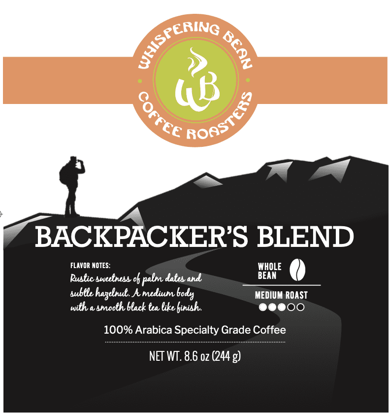 Whispering Bean Coffee Roasters – Backpacker’s Blend, Whole Bean, Medium Roast, 8.6oz